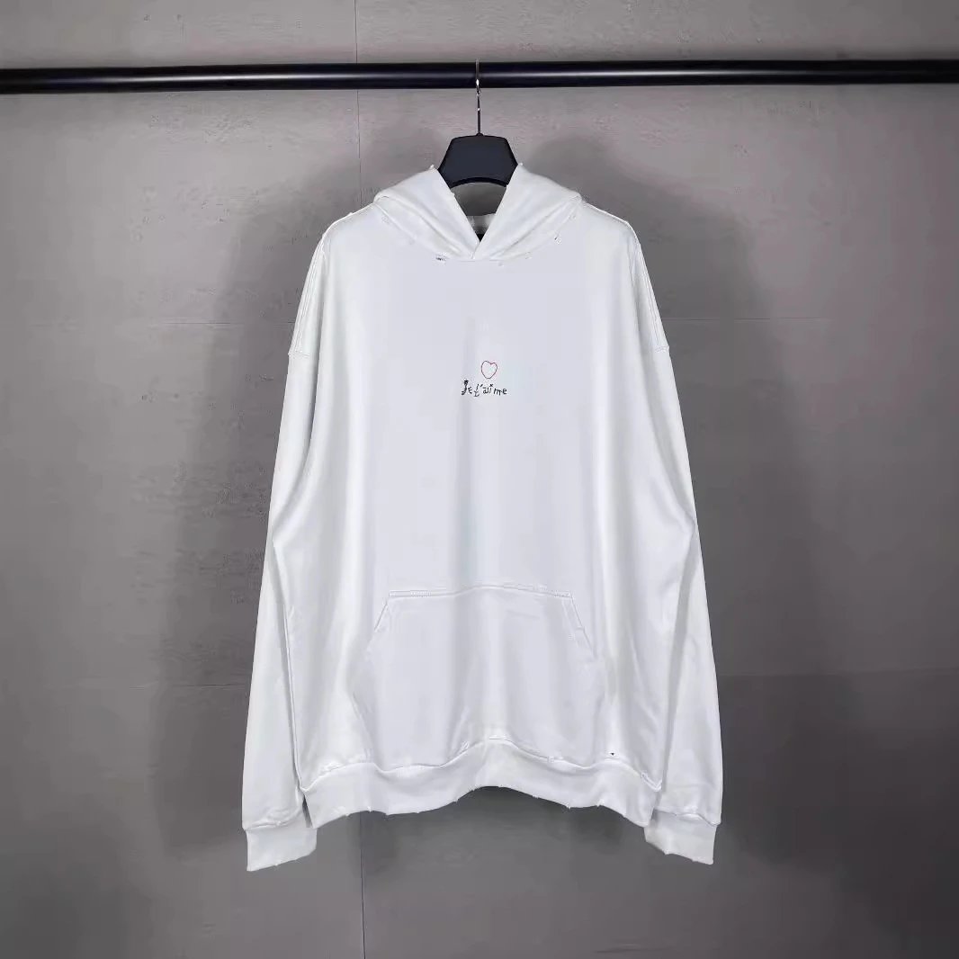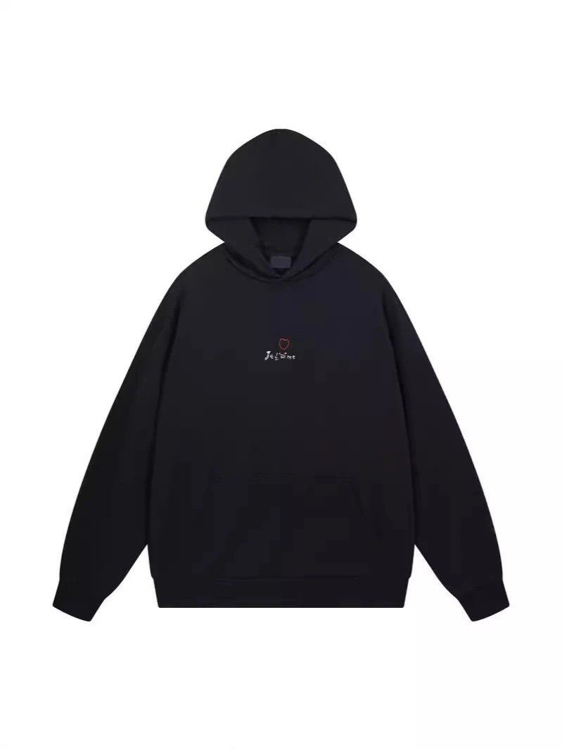 23s巴黎七夕情人节爱心刺绣连帽卫衣OS落肩宽松套头帽衫男女款