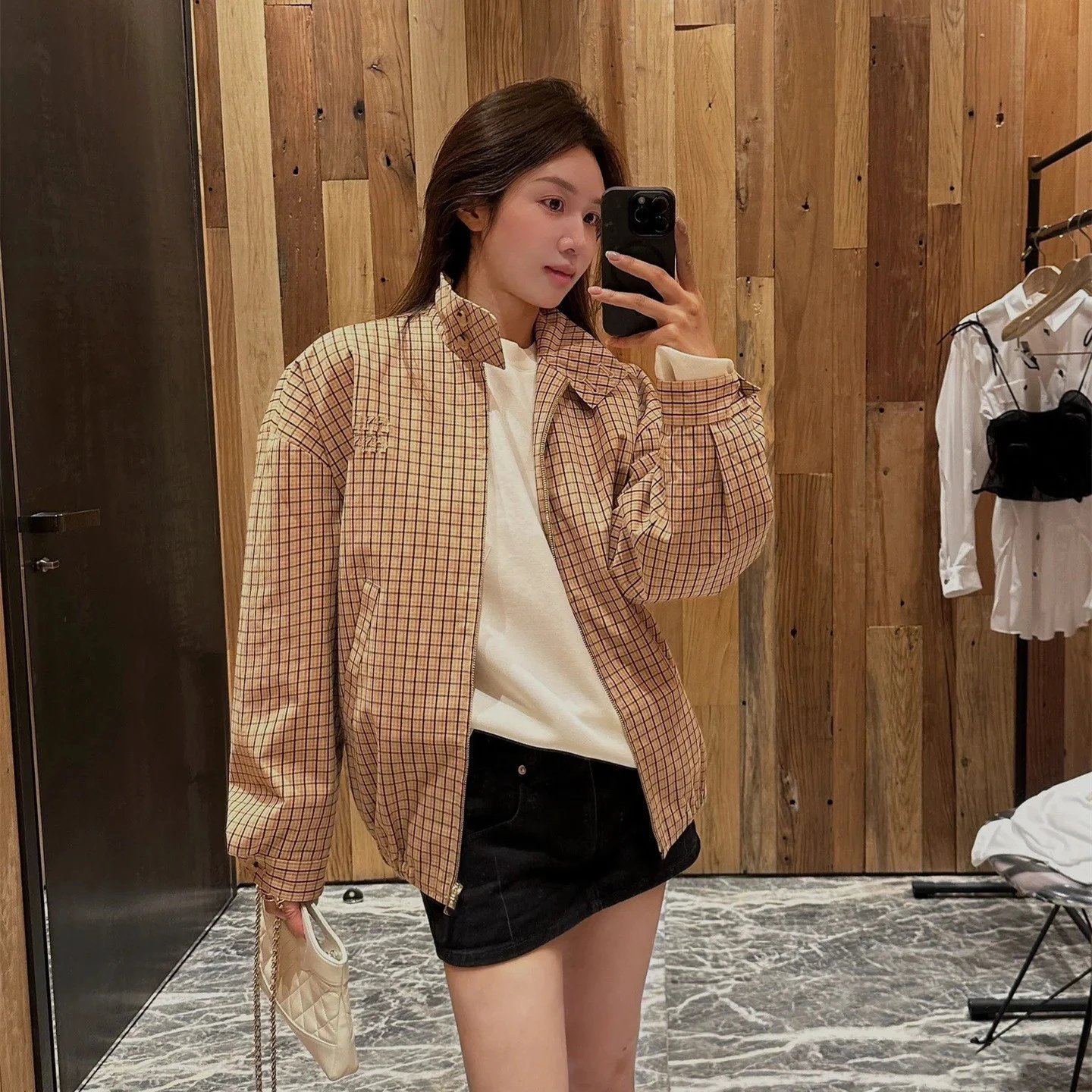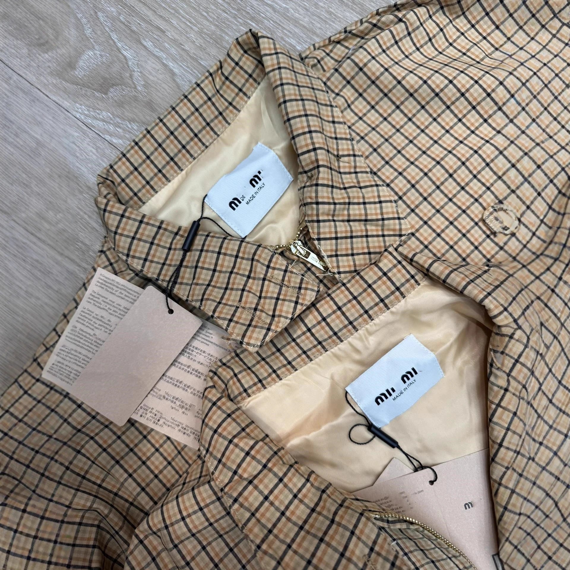 25FwMIU缪家网红款贴布刺绣格纹夹克开衫外套男女