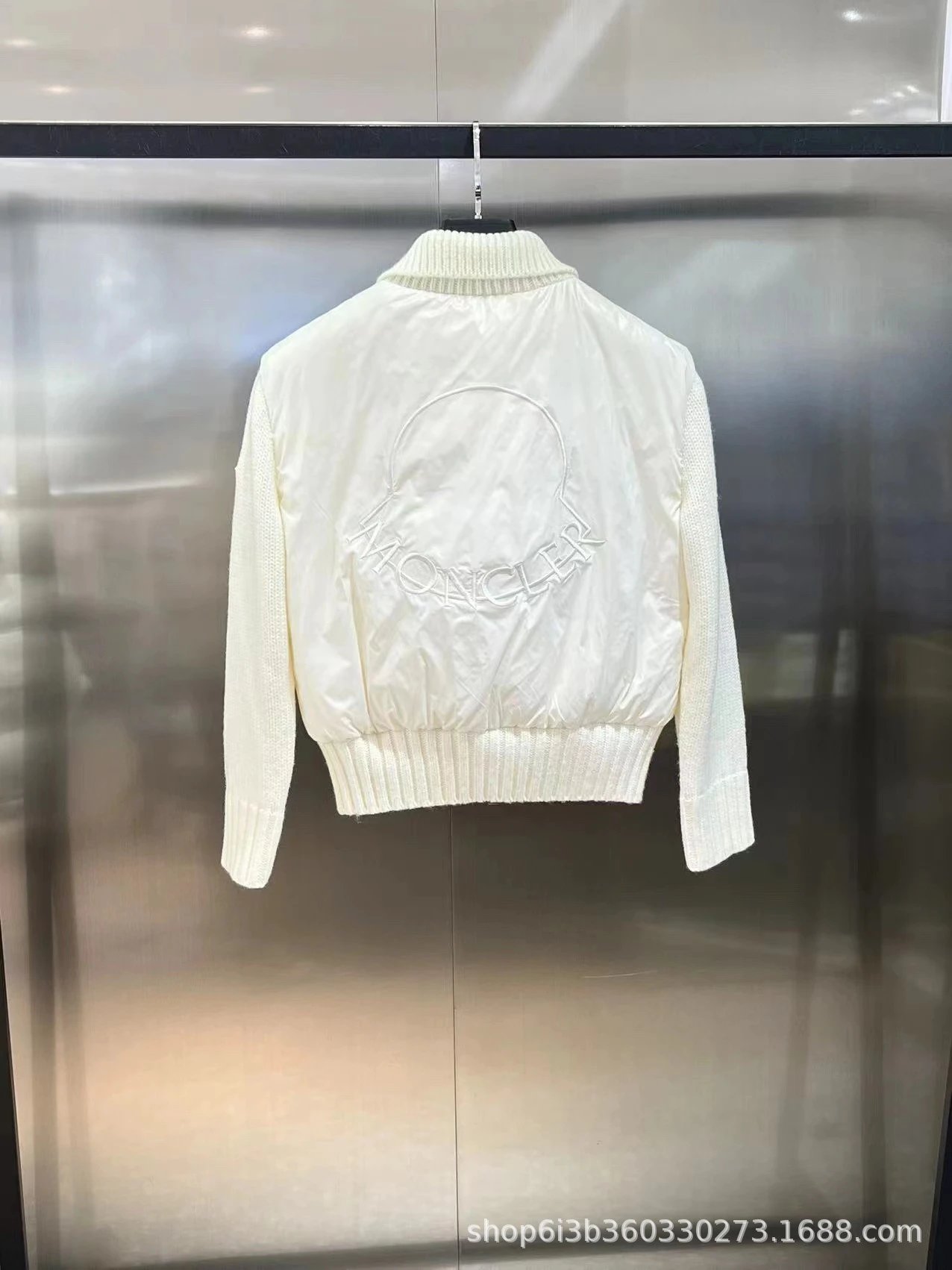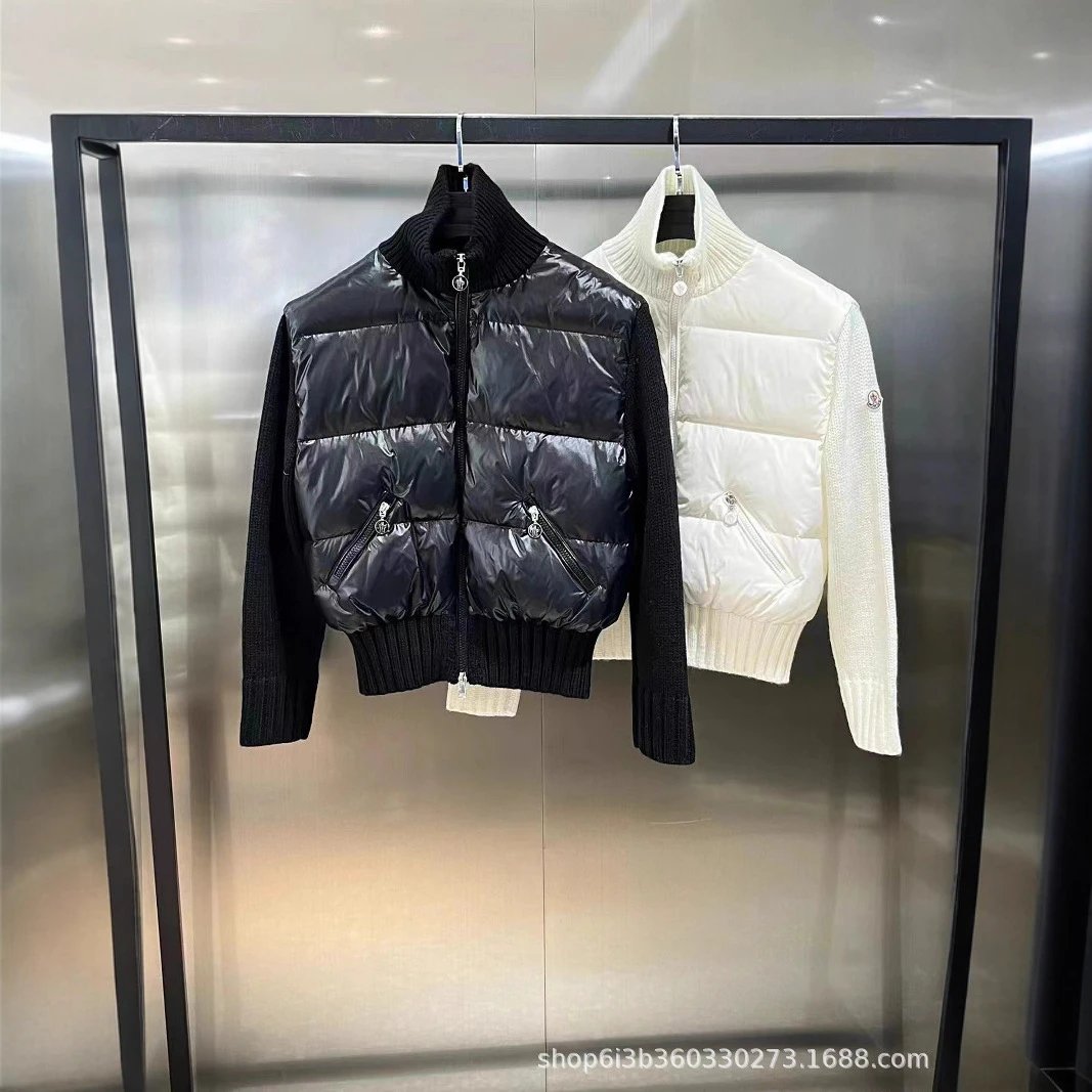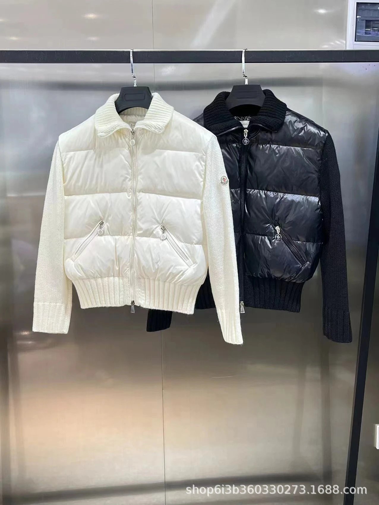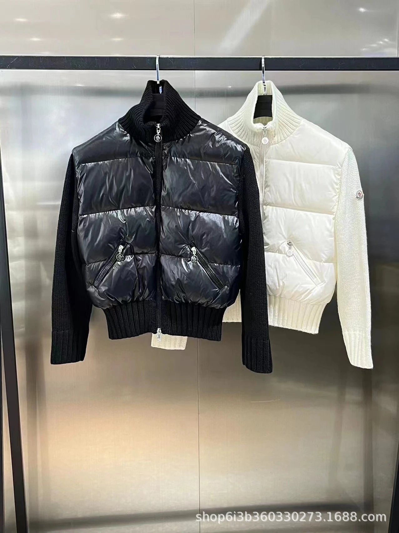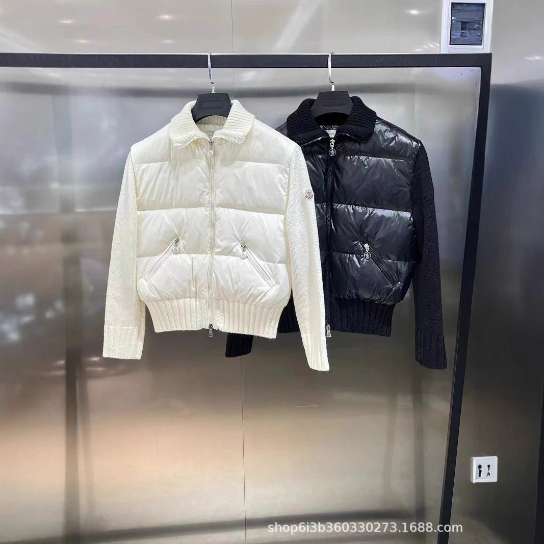 25秋冬新款M家针织拼接轻薄白色羽绒服立领短款时尚夹克开衫外套