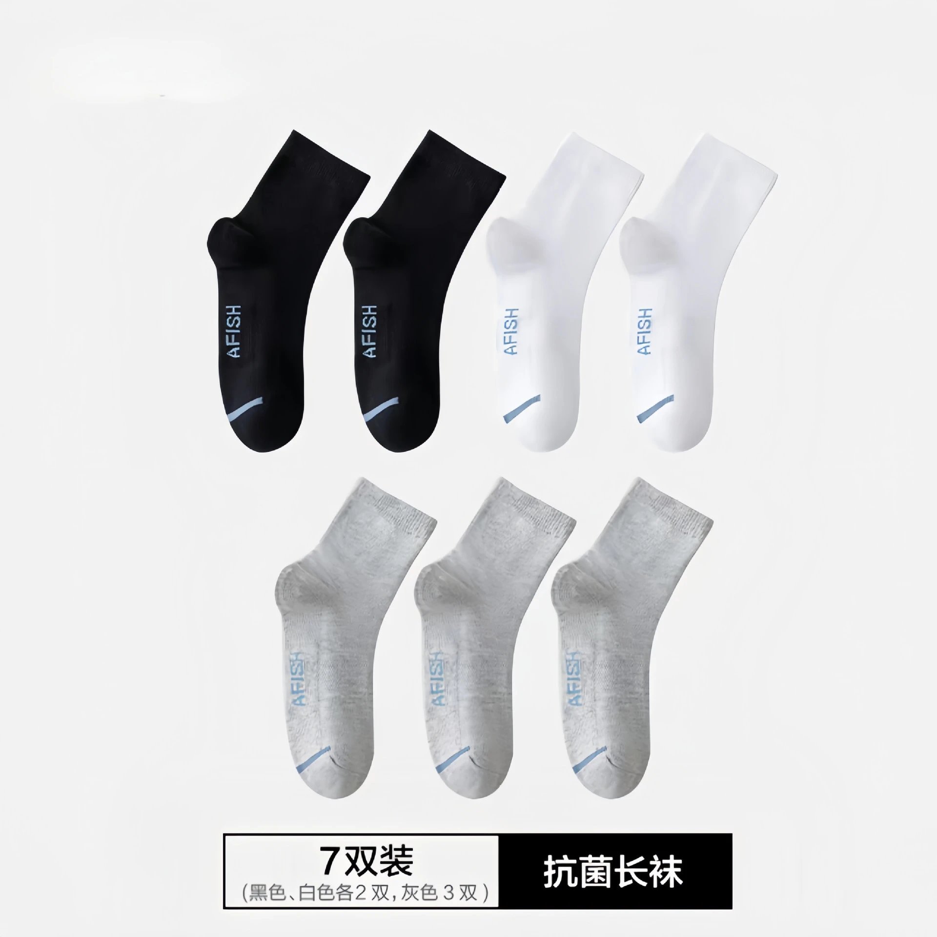 【7A抗菌】男士中筒袜透气吸汗防臭脚男短袜湖远行一只鱼同款袜子