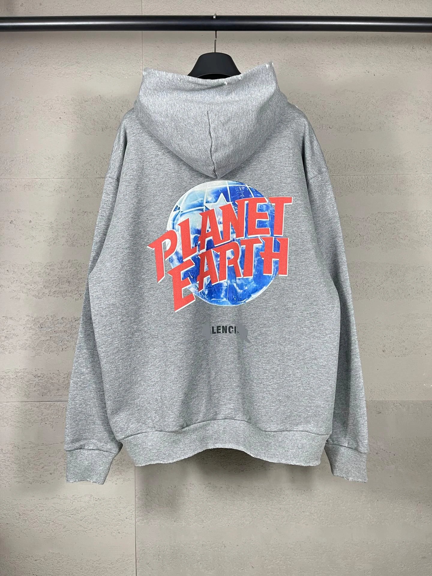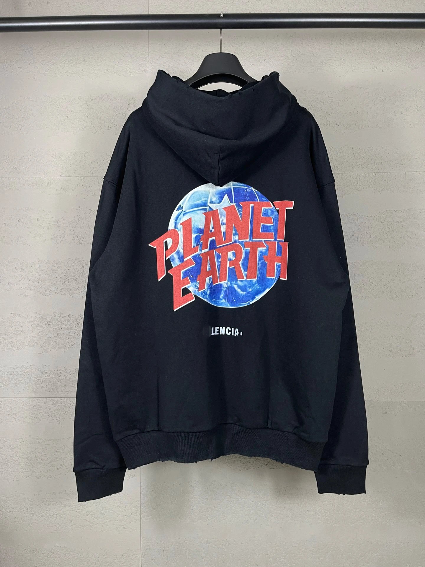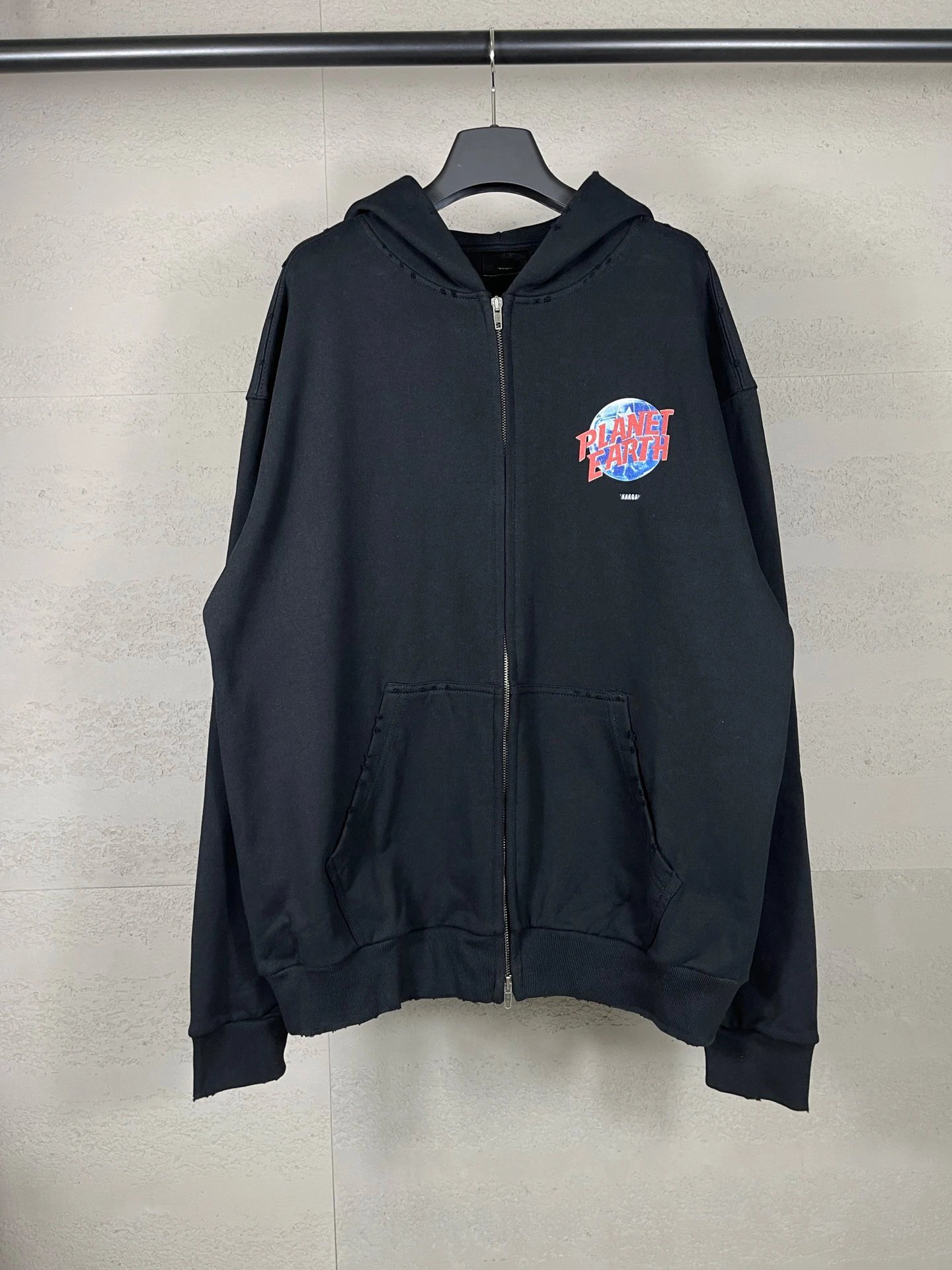 秋冬巴黎走秀款地球图案印花水洗做旧磨烂开衫拉链连帽卫衣