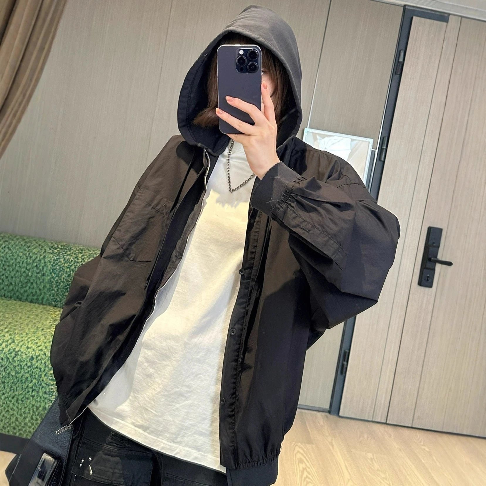C hooded fake two-piece tooling jacket