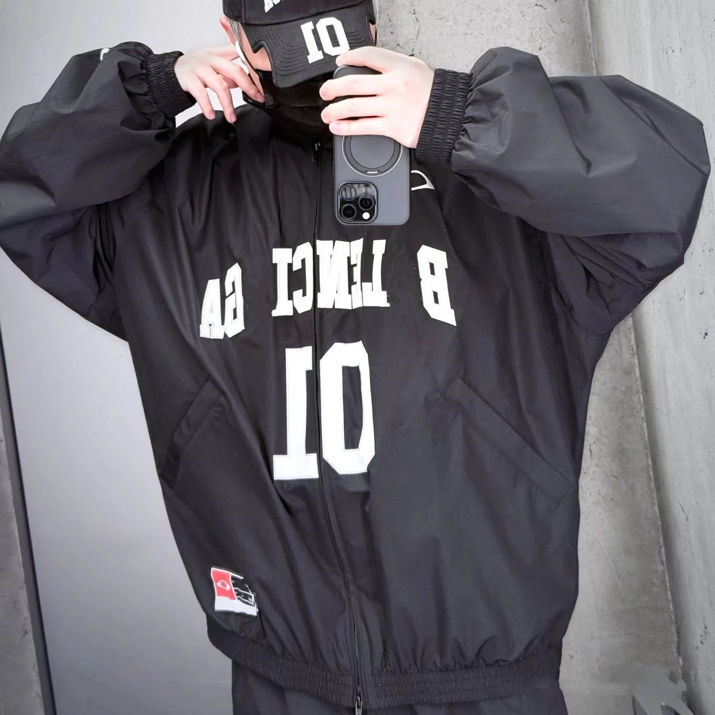 巴黎B家曼联篮球系列刺绣运动风衣冲锋衣夹克长裤套装男女
