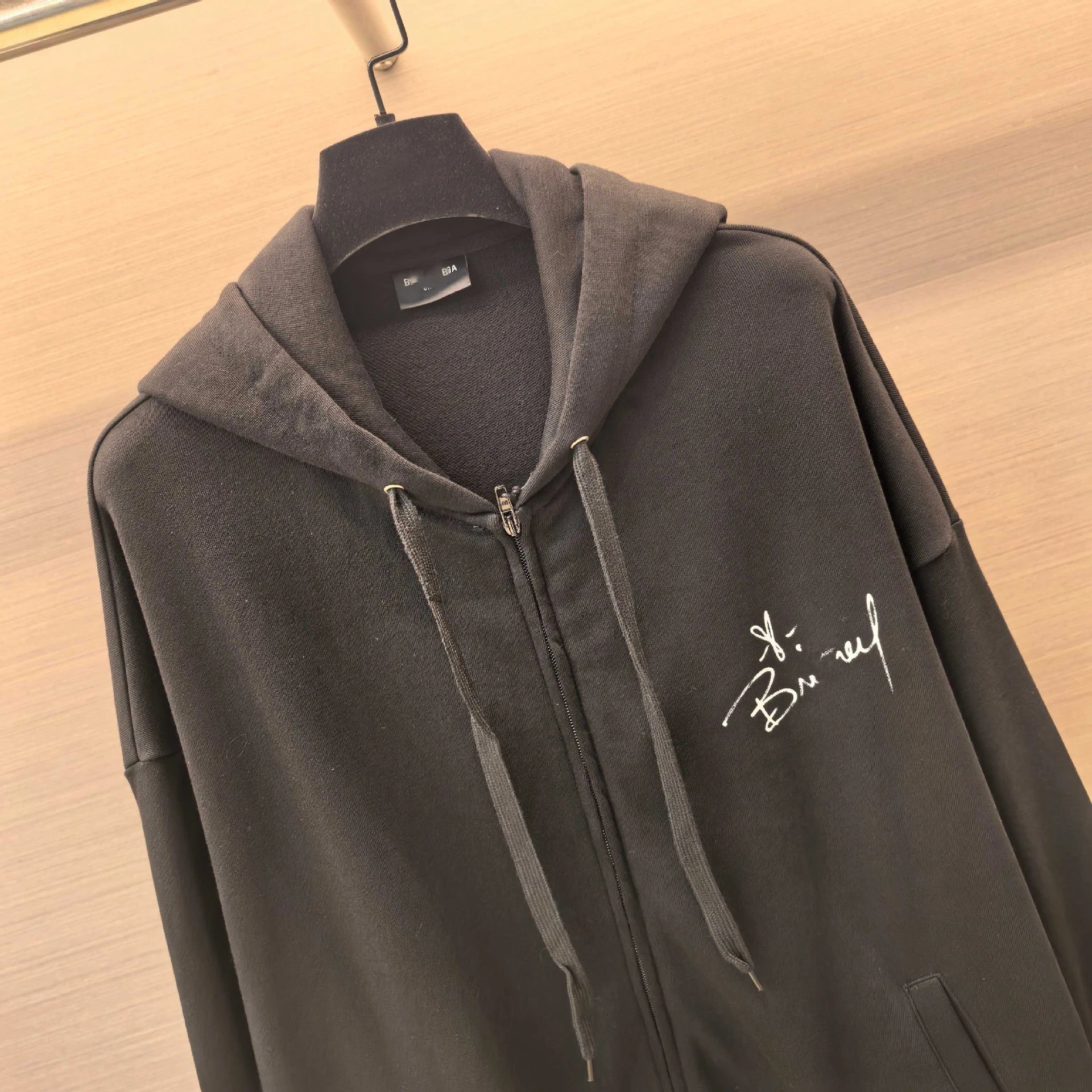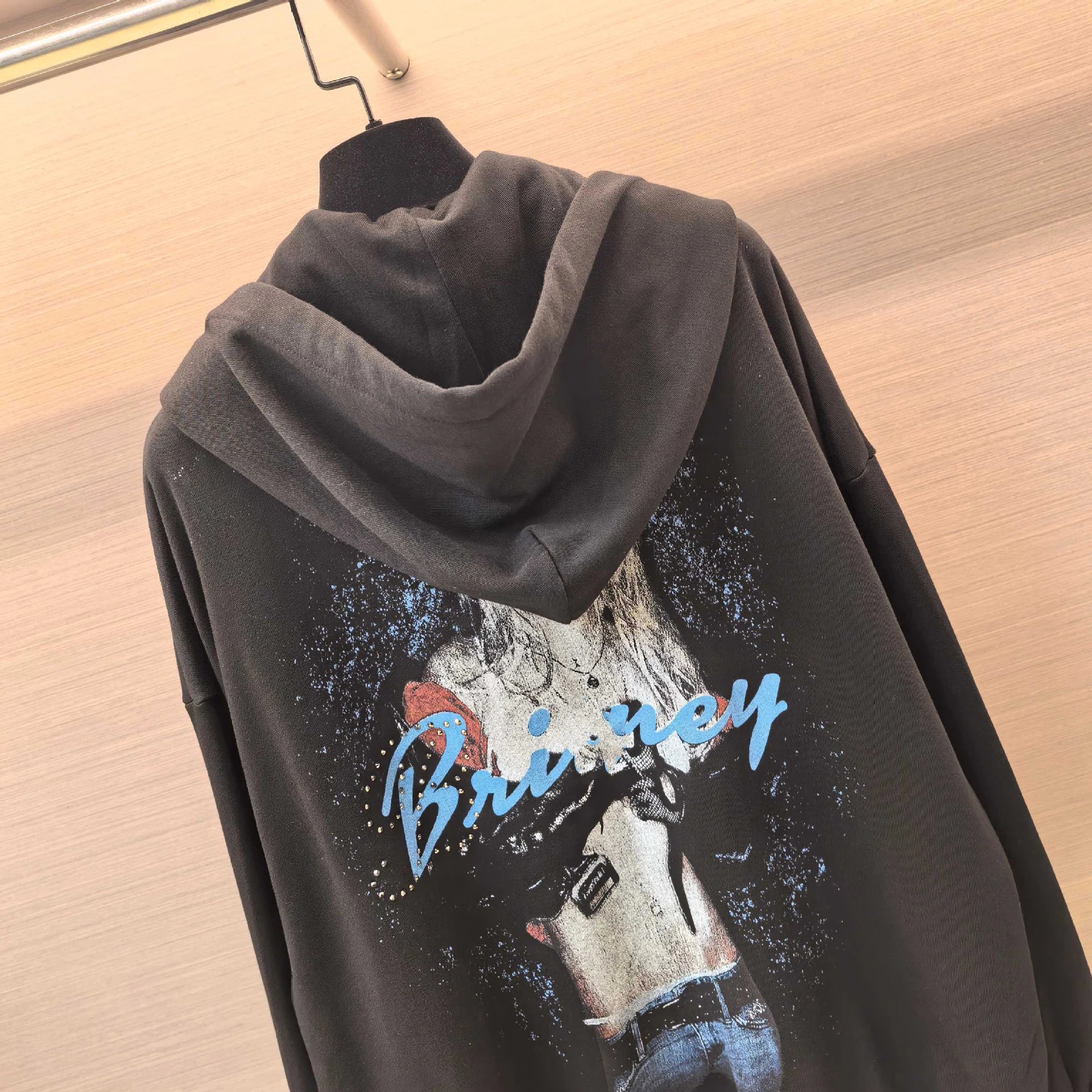 高品巴黎B小甜甜布兰妮人象系列水洗黑卫衣连帽开衫外套男女