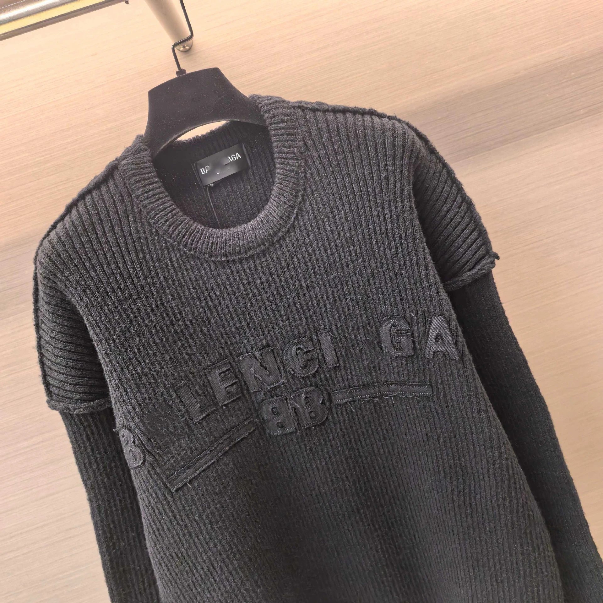秋冬新款本巴黎B家贴布绣字母刺绣反车套头毛衣男女
