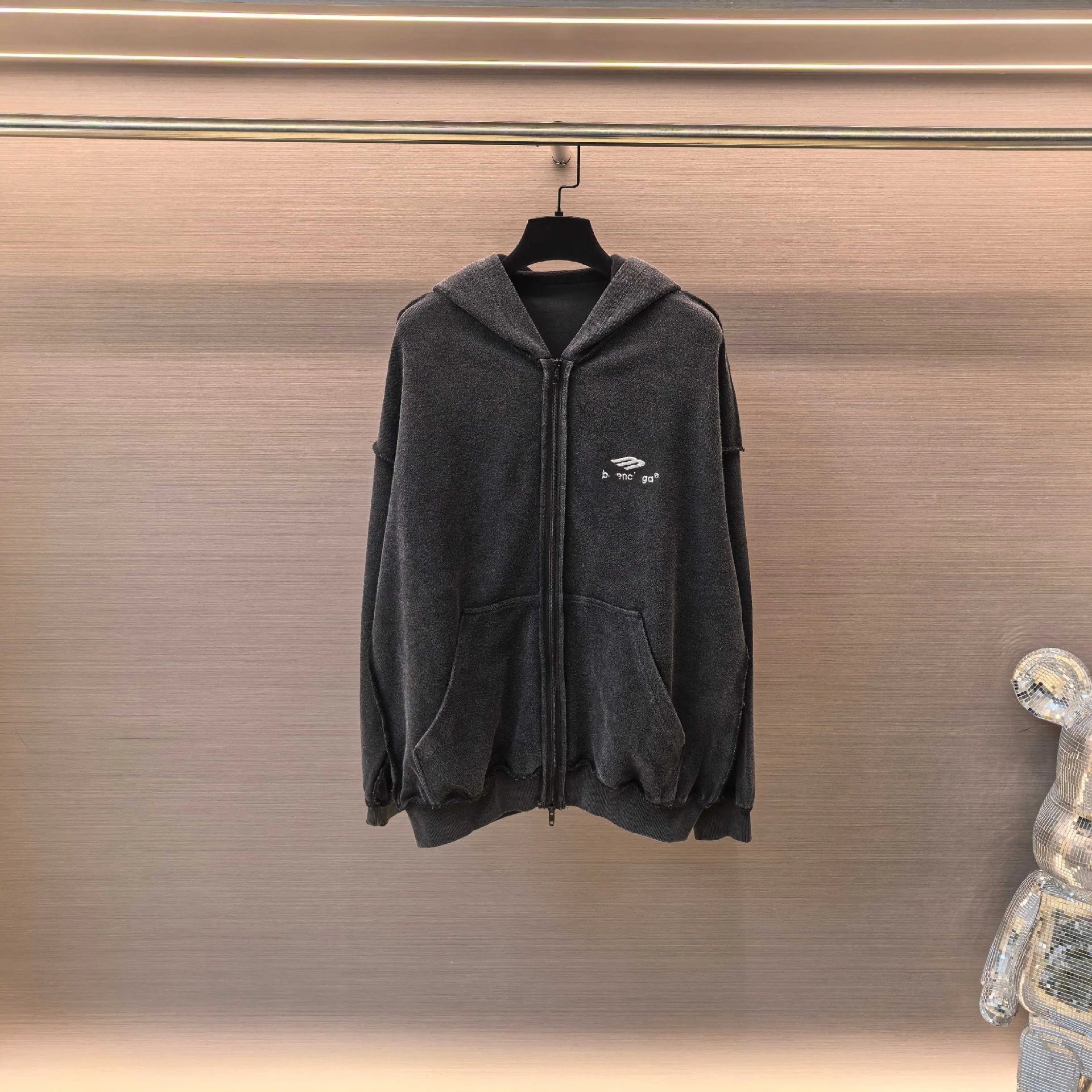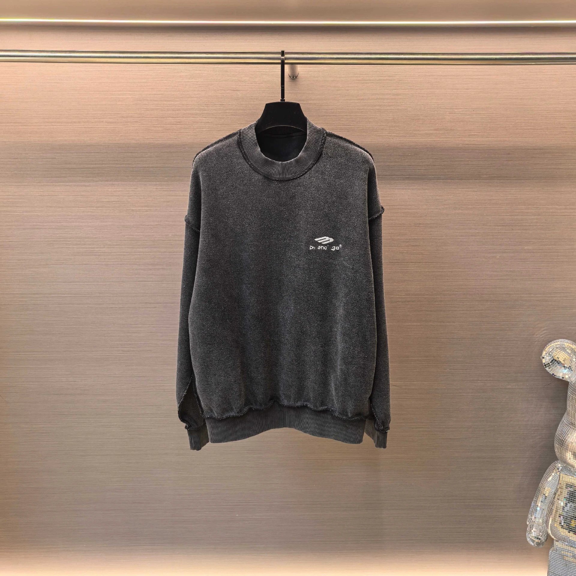 新款高品巴黎B家经典艺术绣花字母反车洗水运动卫衣外套