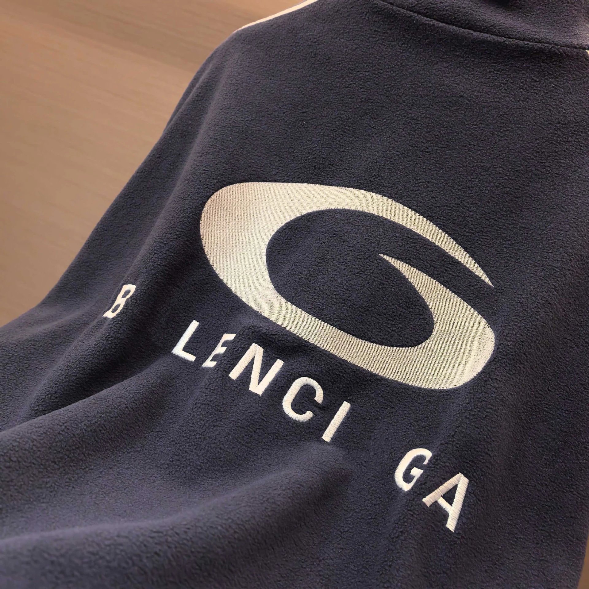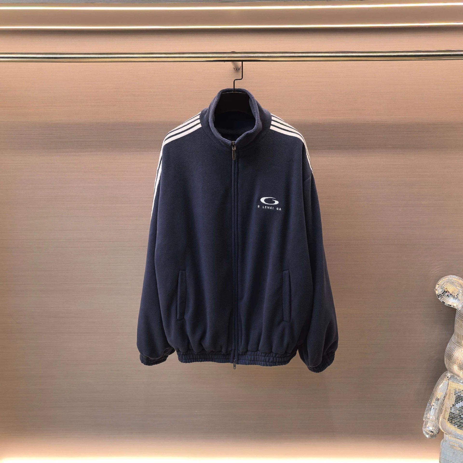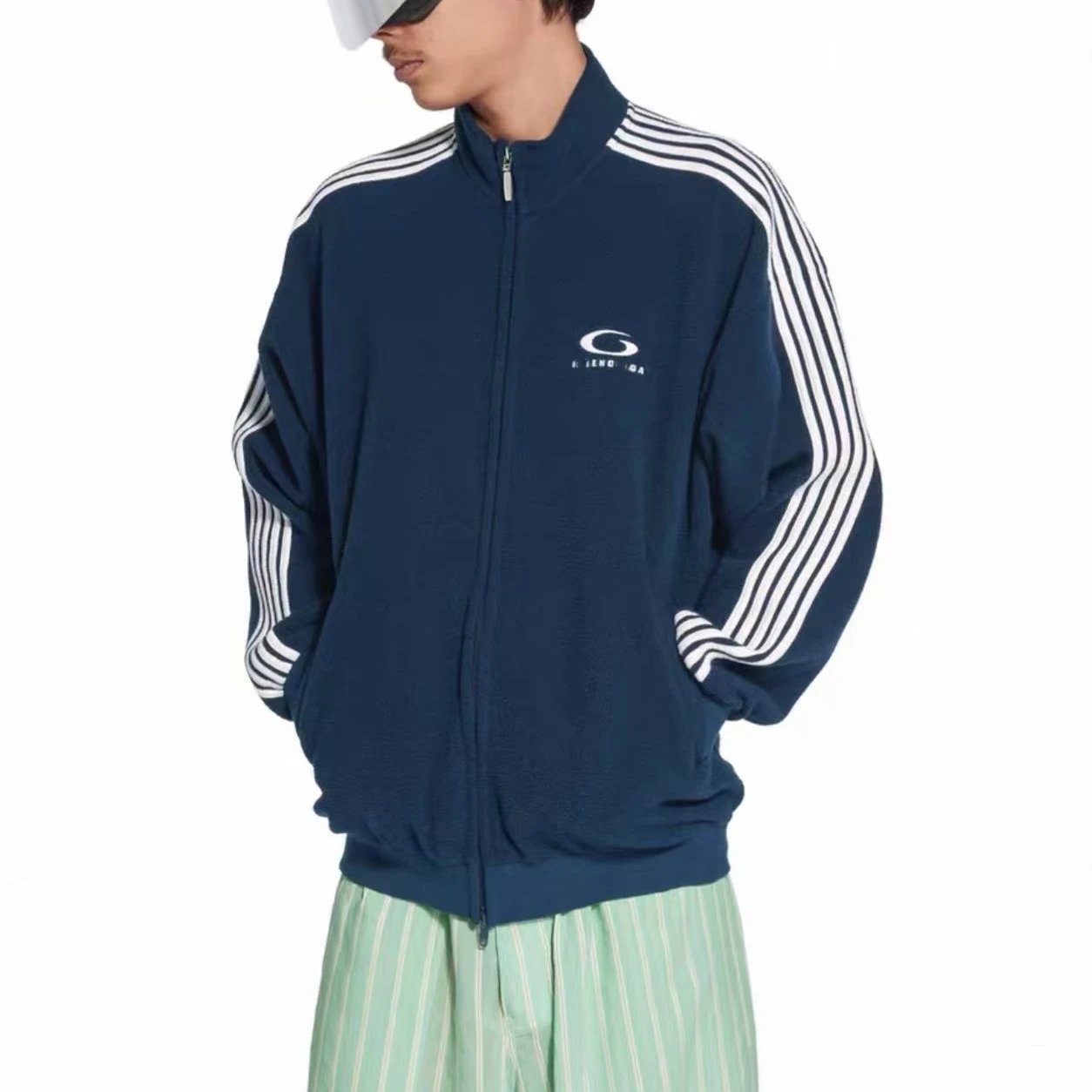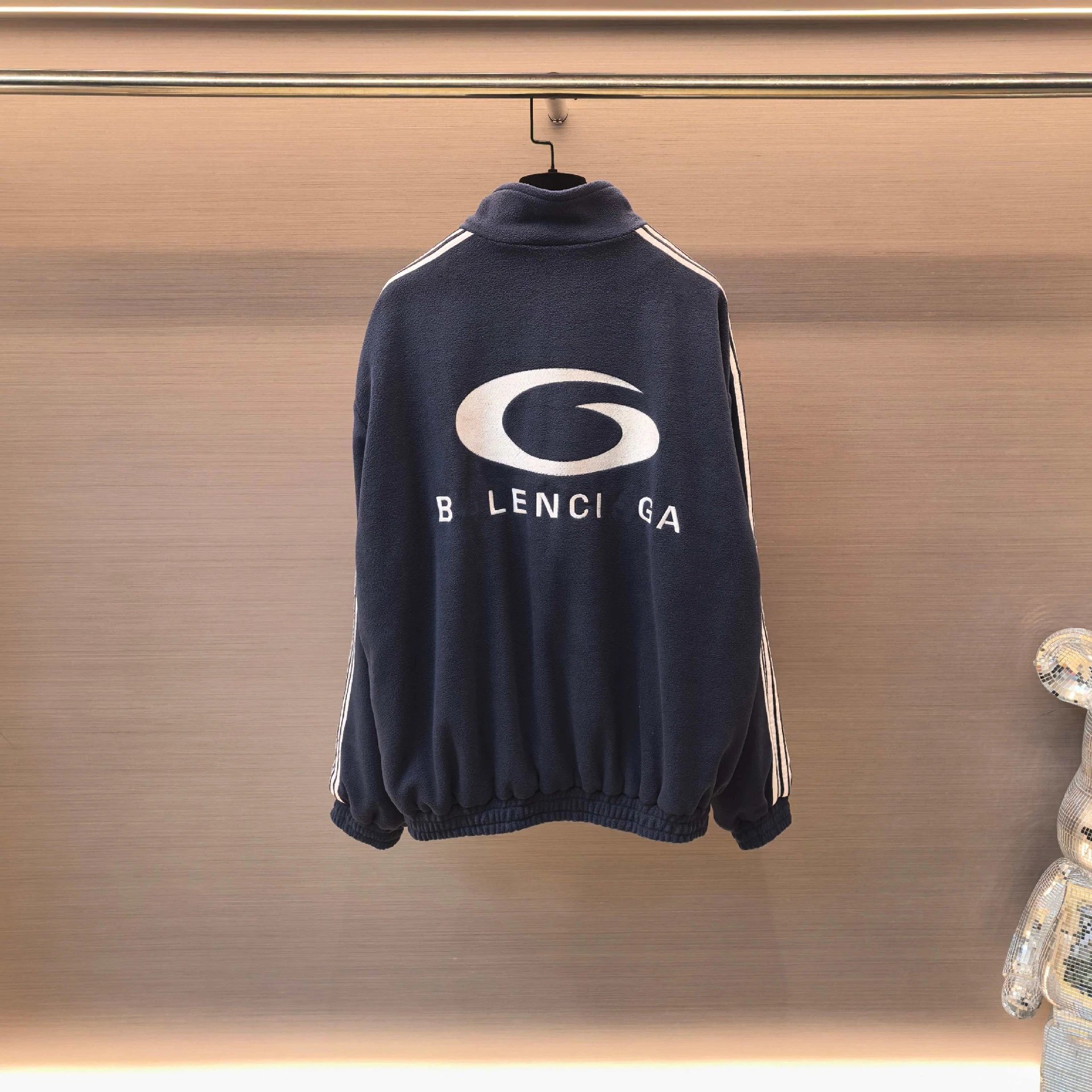 巴黎B家网红款字母刺绣五条杠颗粒绒立领校服夹克外套