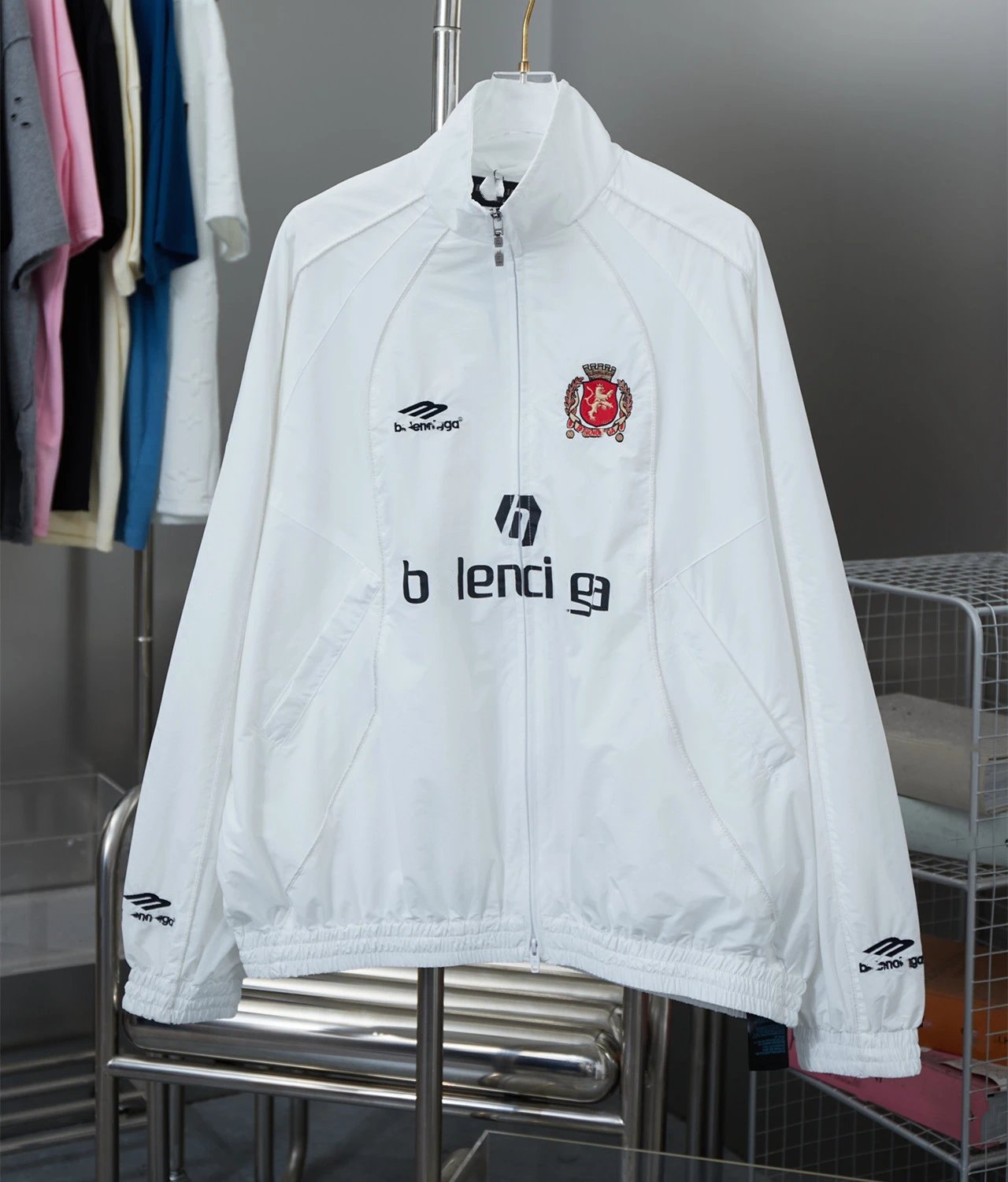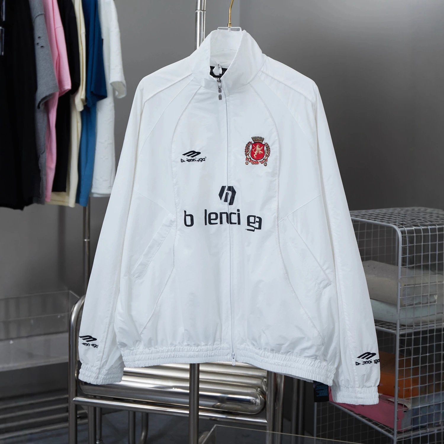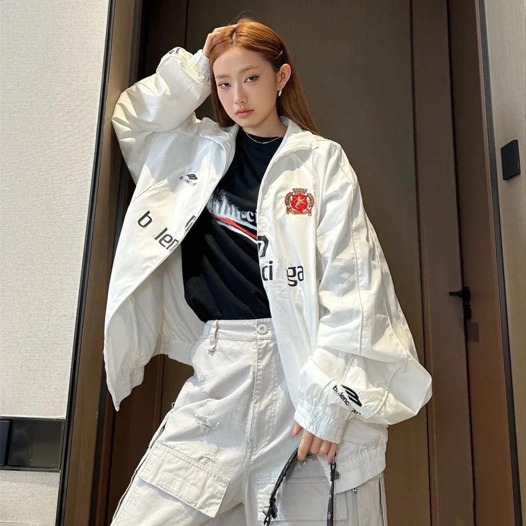 巴黎B家曼联联名款小红书网红款刺绣嵌条冲锋衣夹克男女