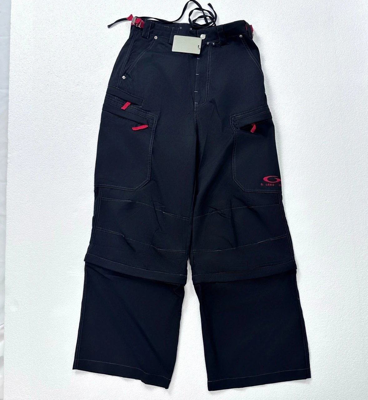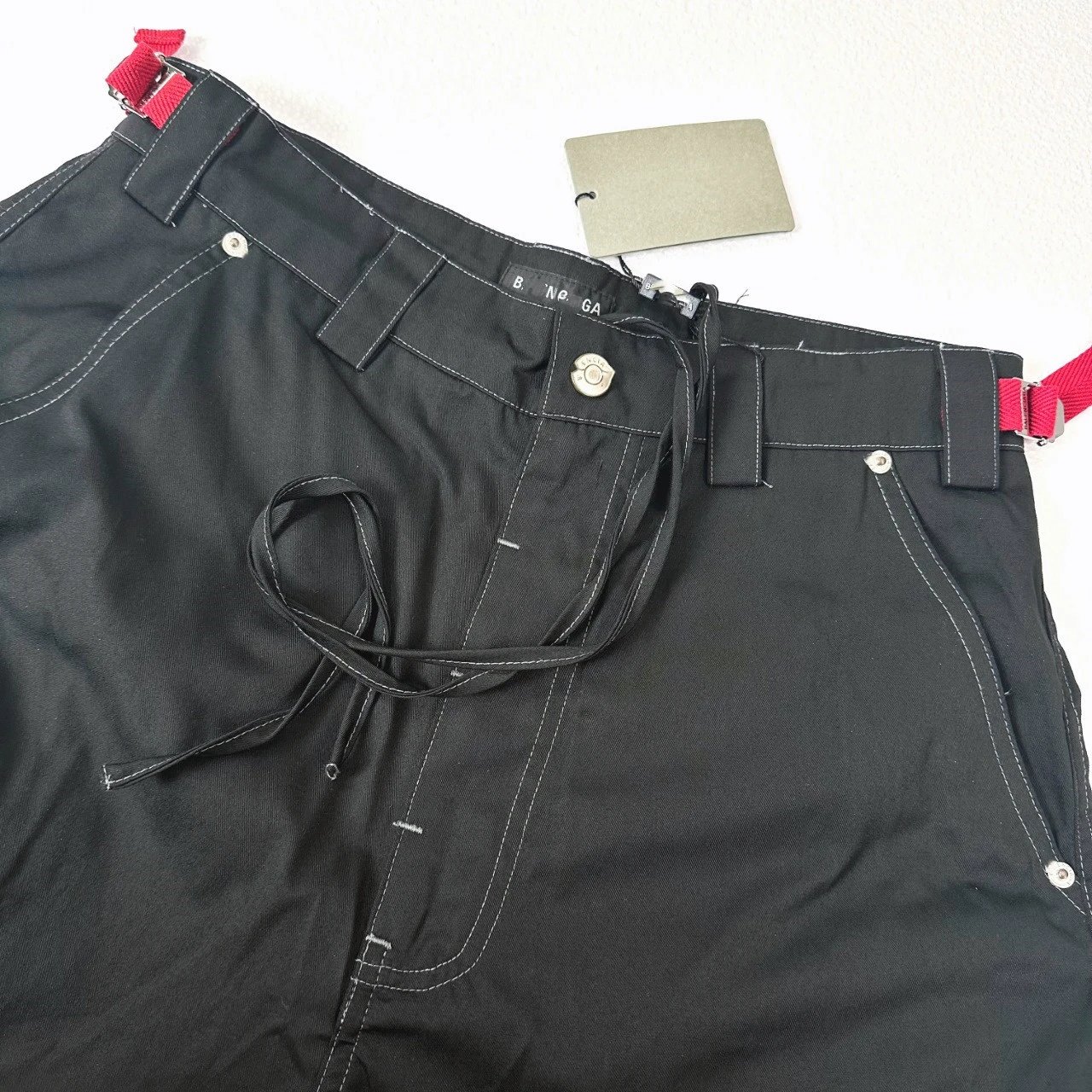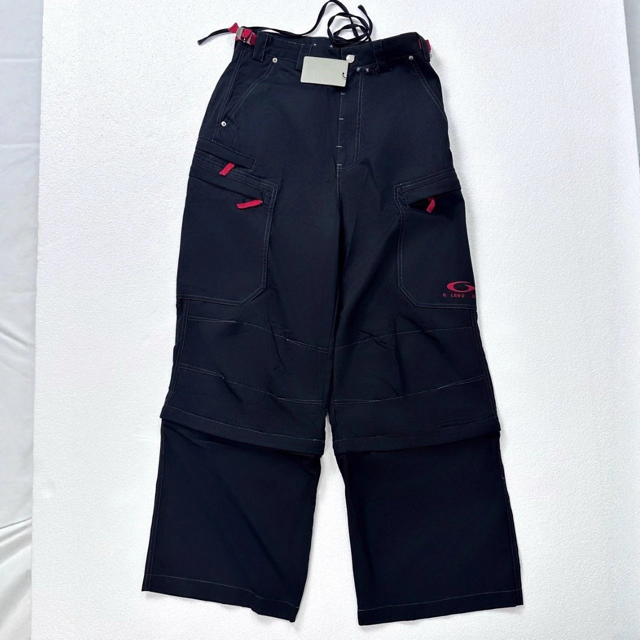 巴黎B家网红款红刺绣工装裤宽松阔腿长裤男女
