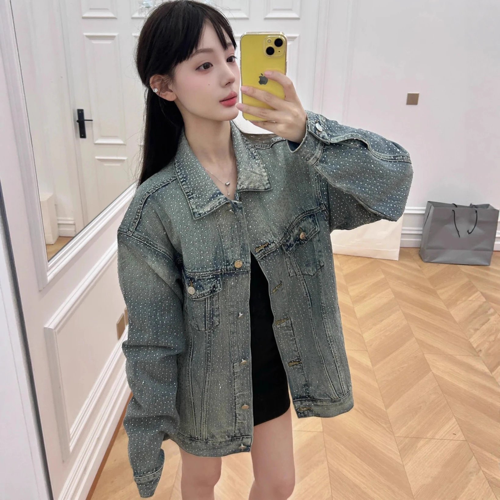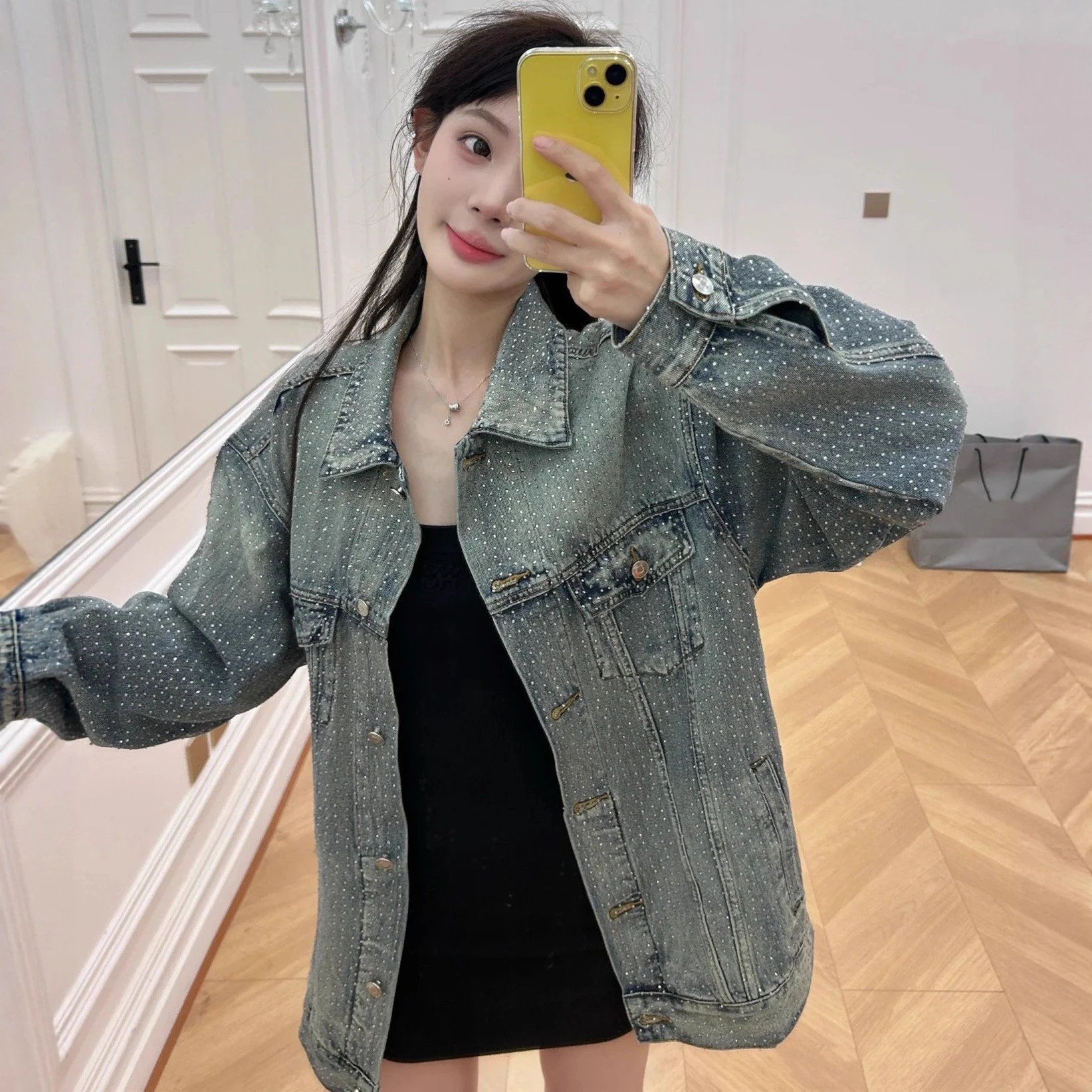 Diamond-studded Denim Jacket: Loose Casual Patchwork Jacket for Men and Women