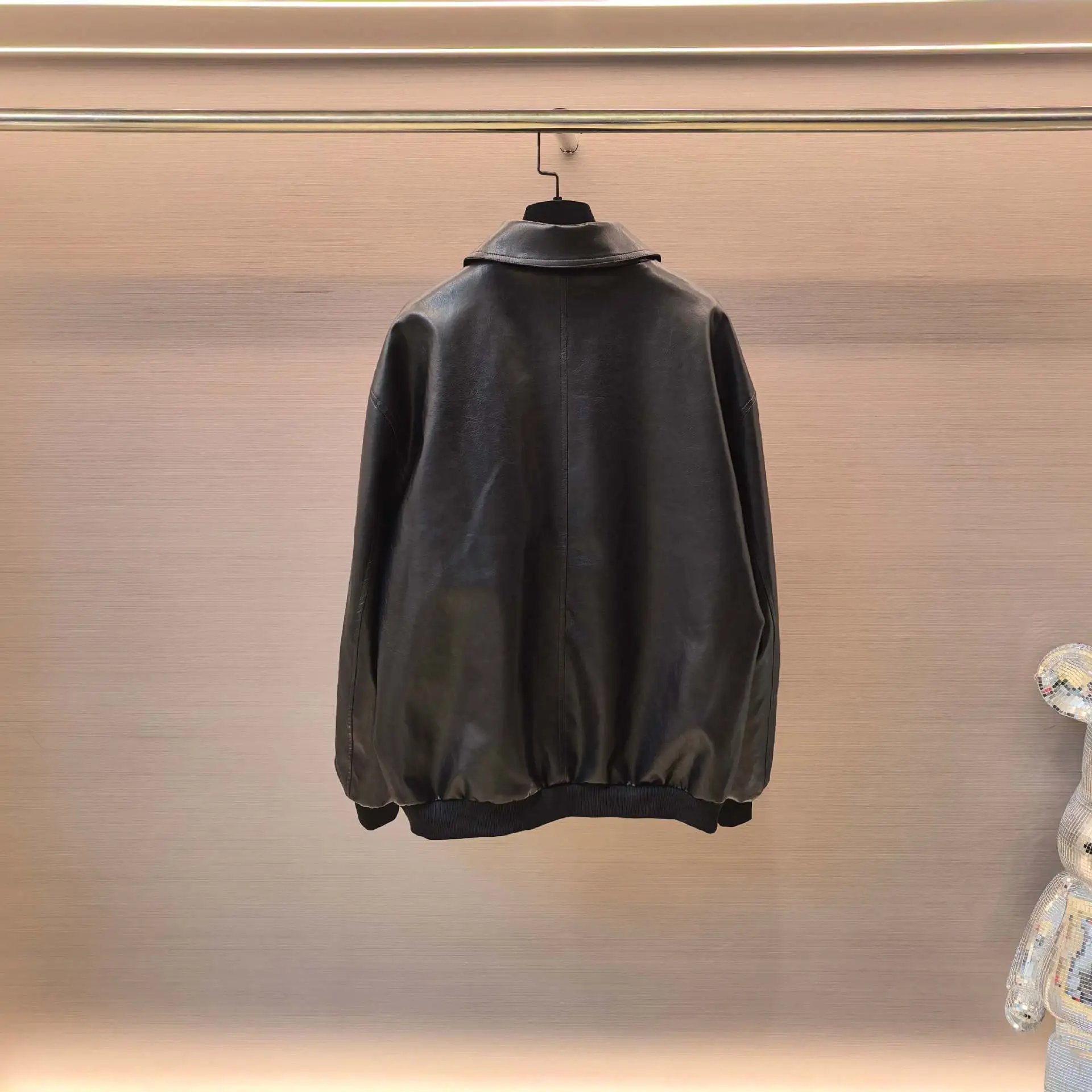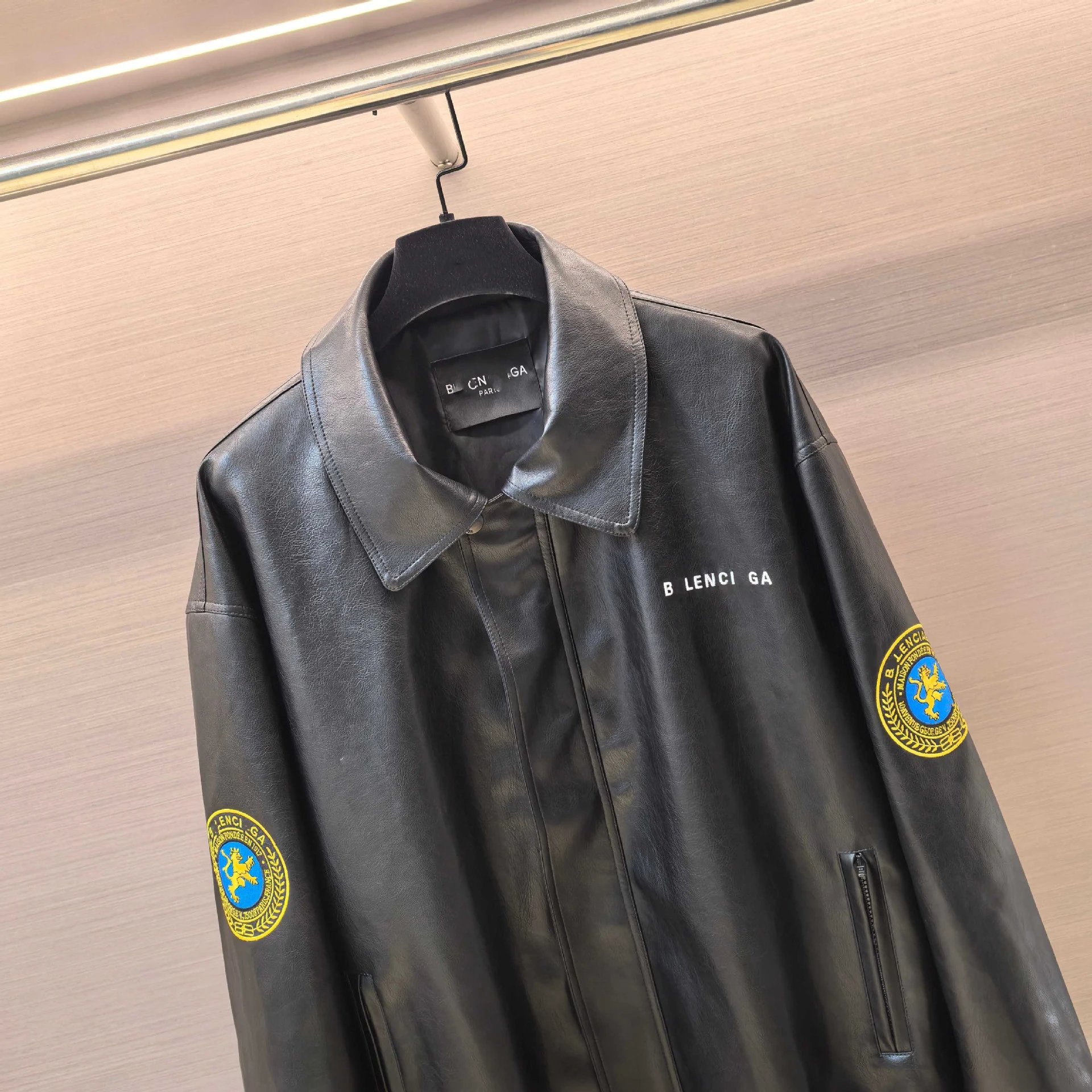 巴黎B家曼联联名款徽章刺绣飞行夹克皮衣开衫外套
