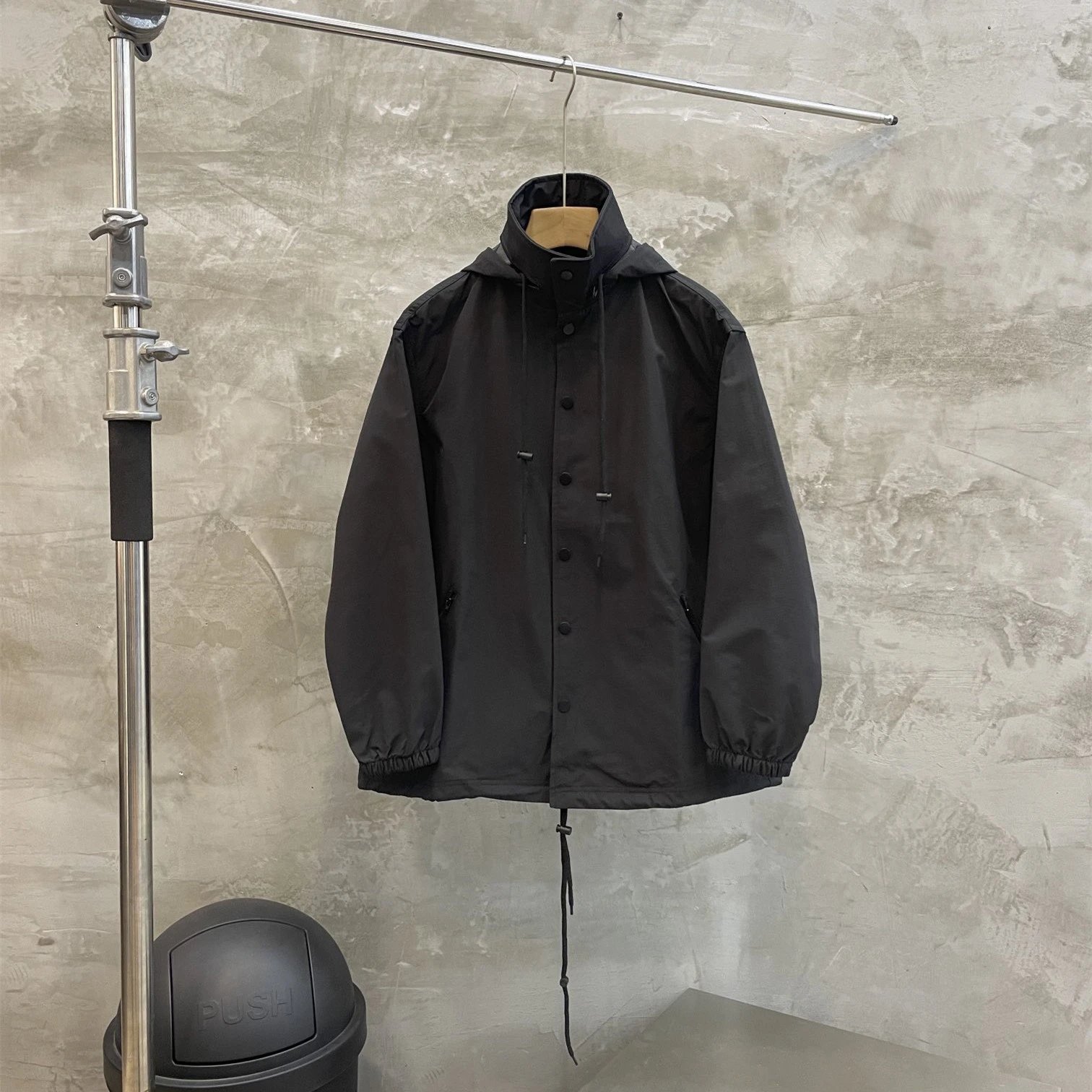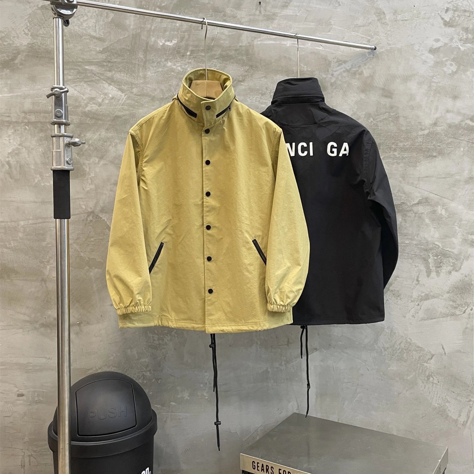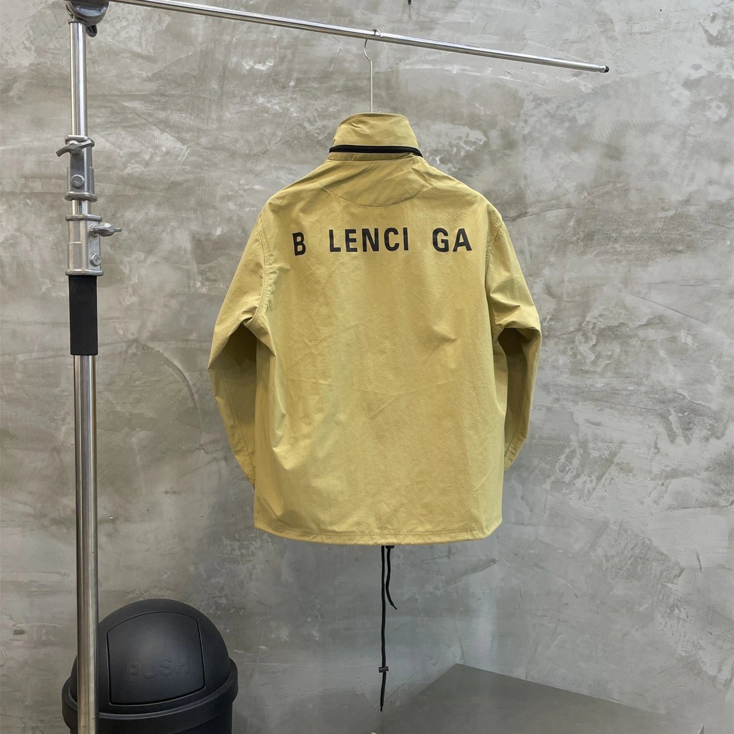 巴黎B家可折叠隐藏帽印花字母防水连帽立领外套冲锋衣夹克
