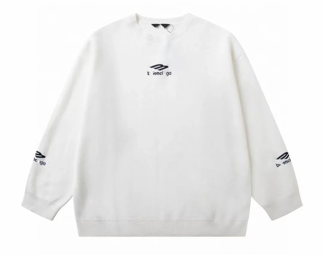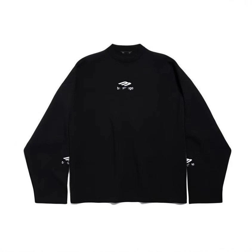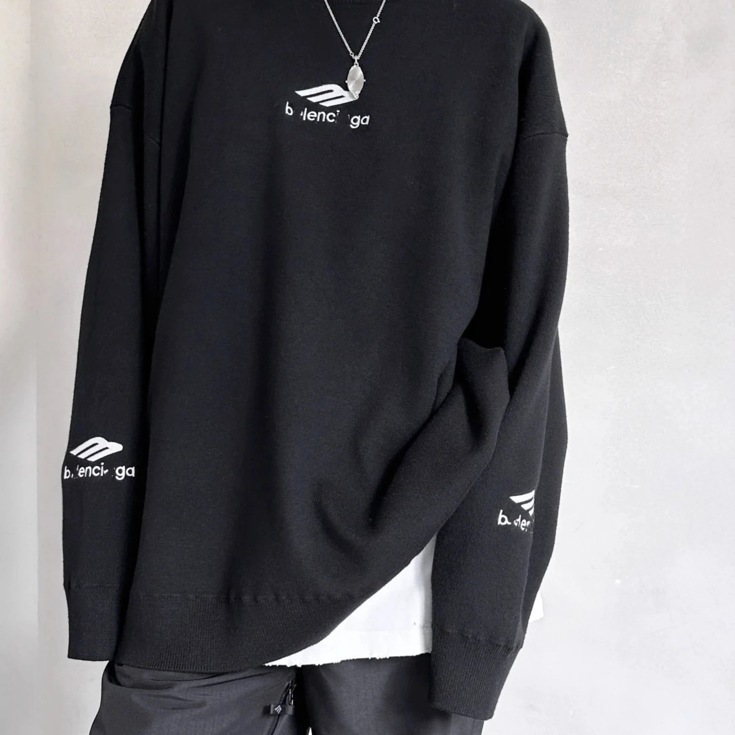 本巴黎B家滑雪系列字母LOGO绣花圆领套头长袖毛衣男女