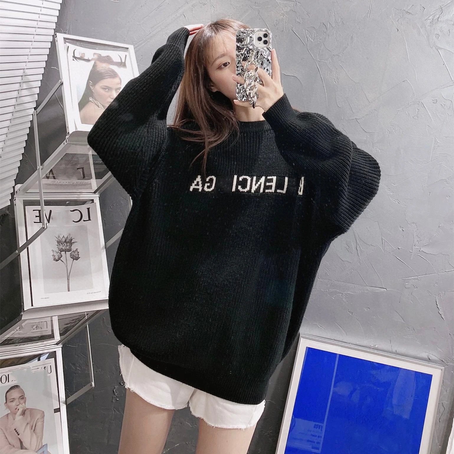 本巴黎B家经典基础款字母提花LOGO针织衫毛衣男女