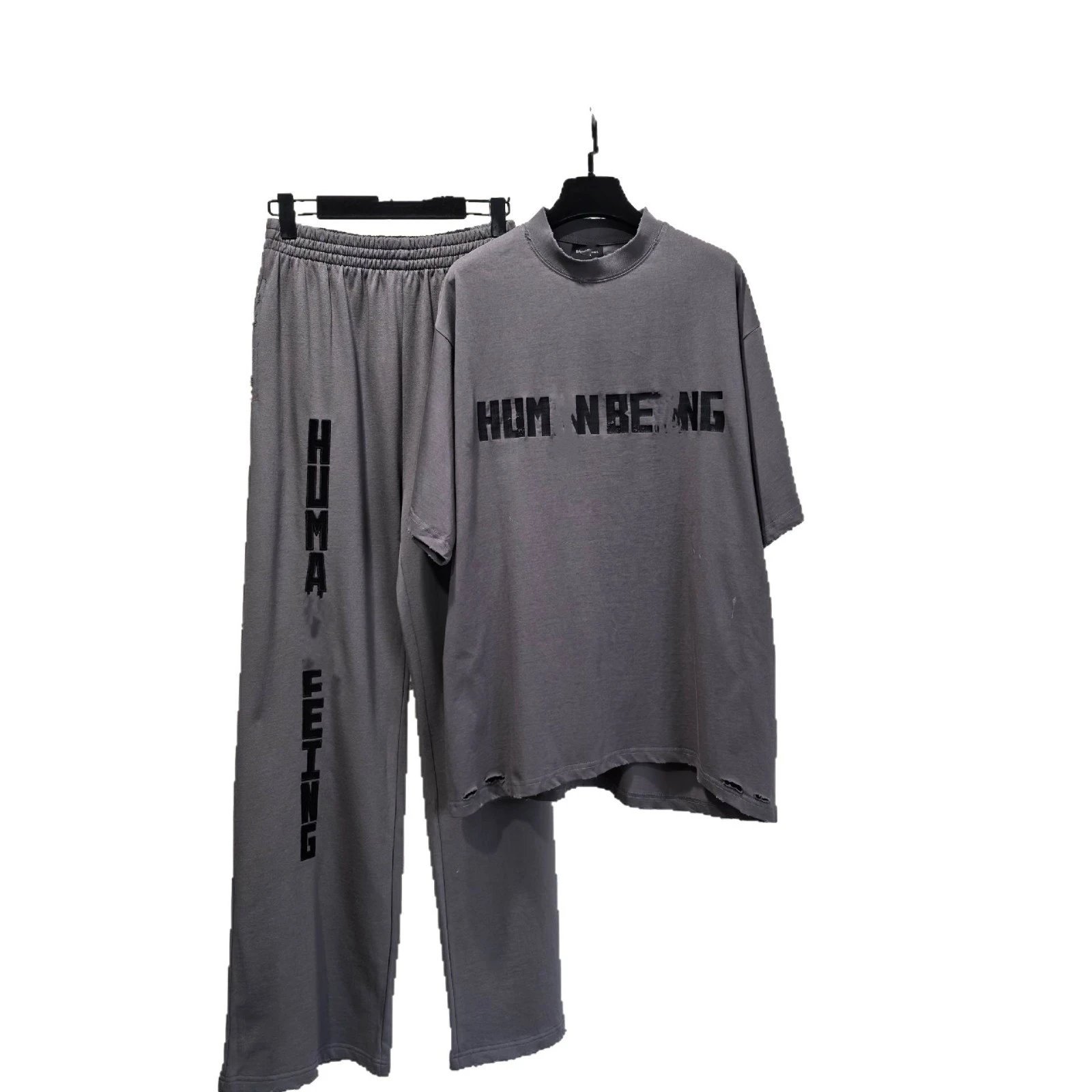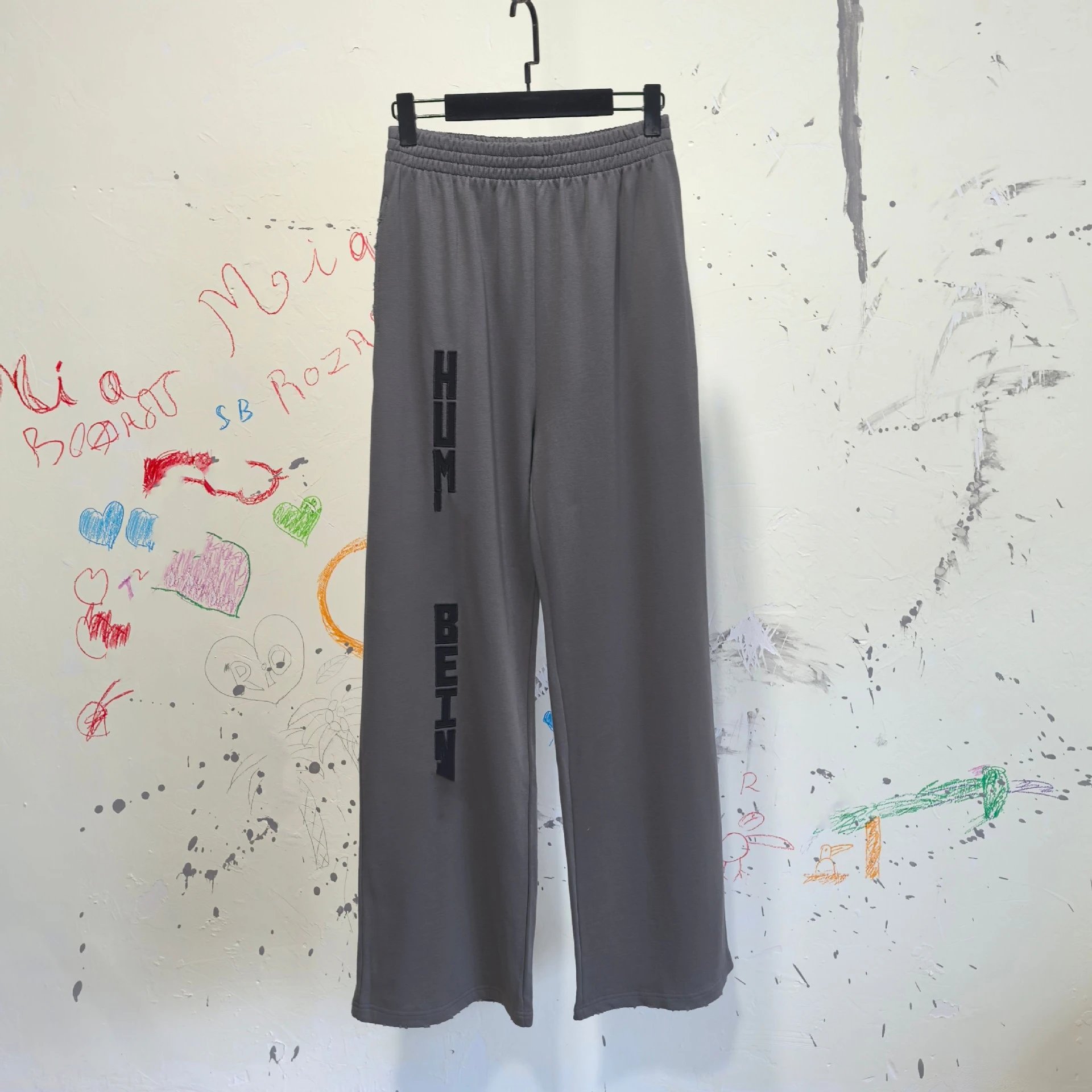 新款巴黎B家字母刺绣LOGO运动裤卫裤宽松男女长裤