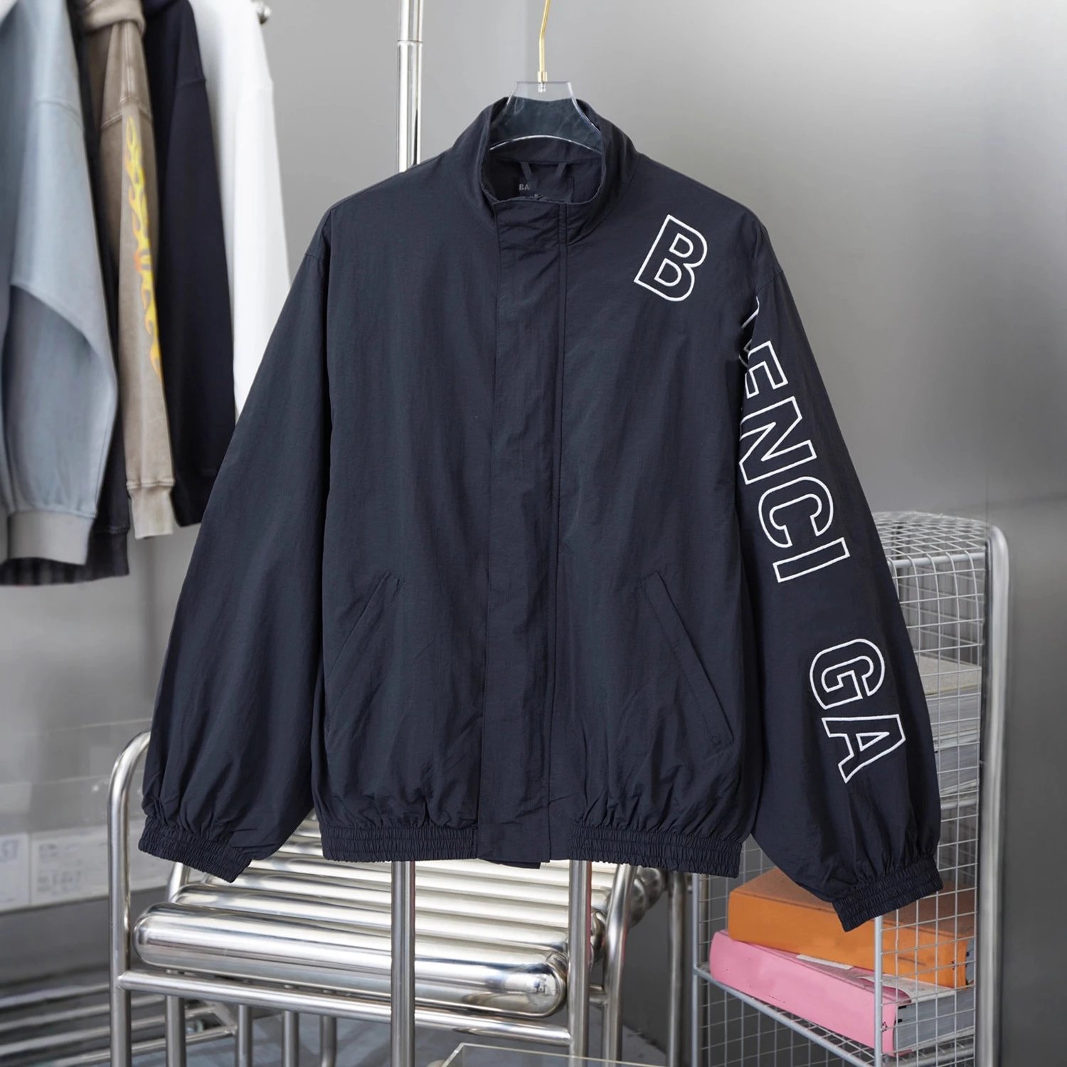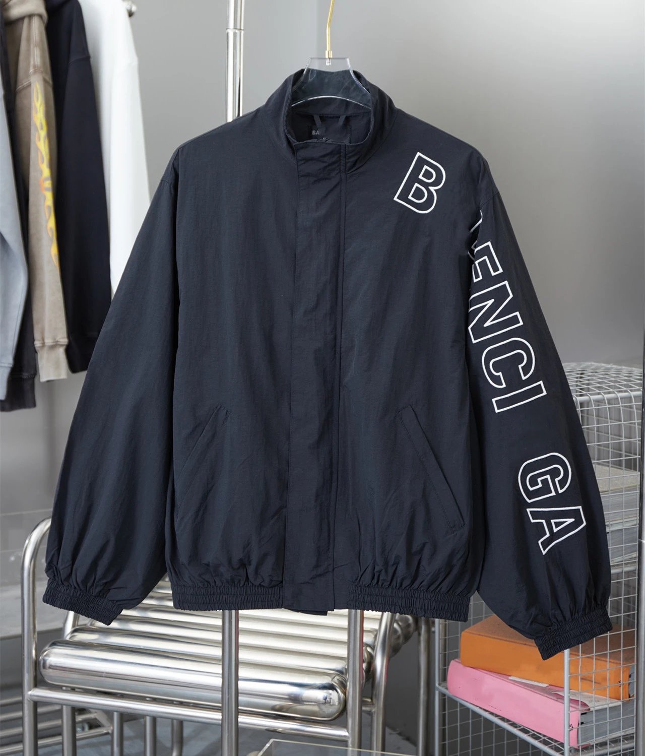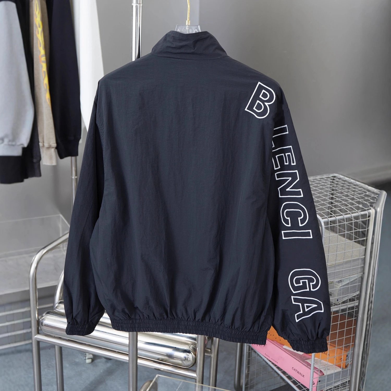 巴黎B家镂空字母刺绣大LOGO运动冲锋衣外套长裤套装男女