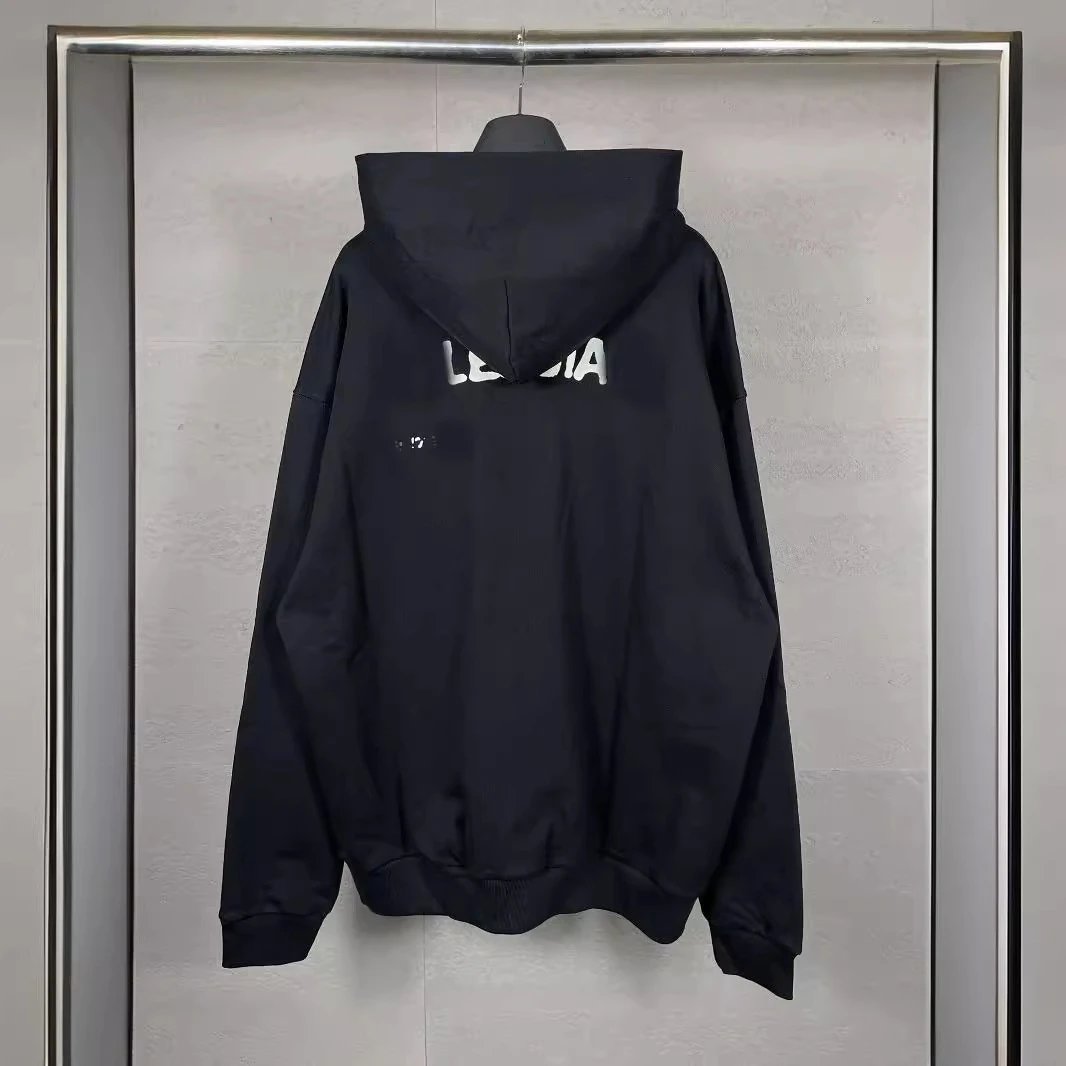 秋冬巴黎字母模糊阴影印花连帽卫衣宽松休闲男女款帽衫情侣款帽衫