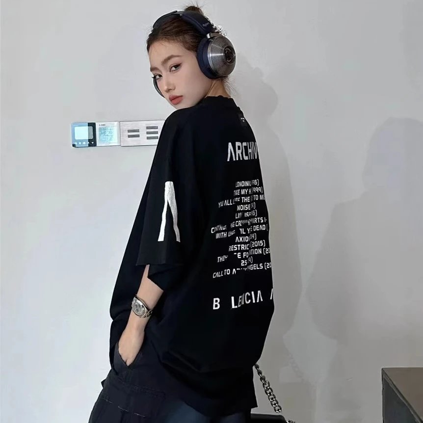 本巴黎B家音乐限定款大V爆裂字母短袖T恤男女