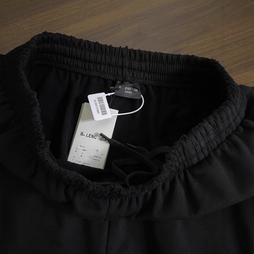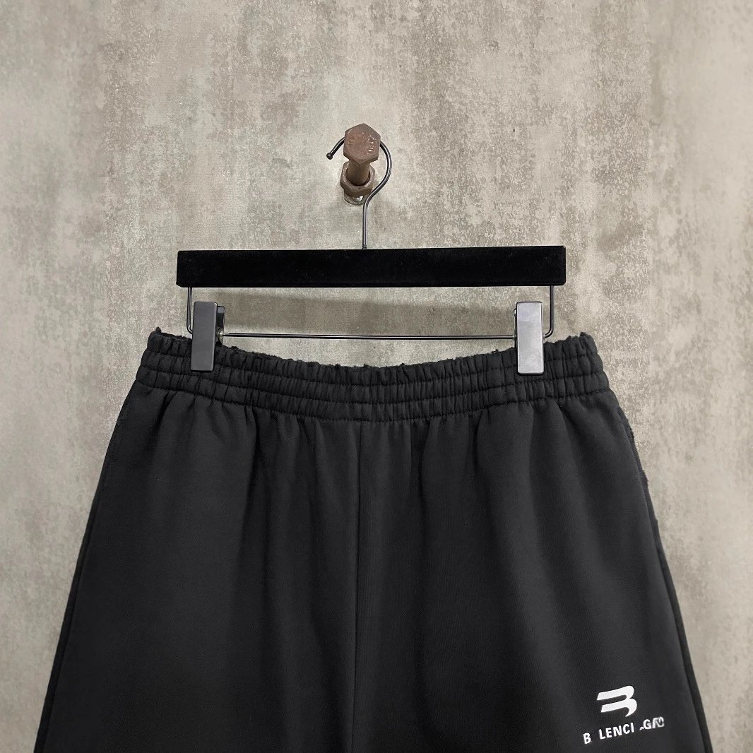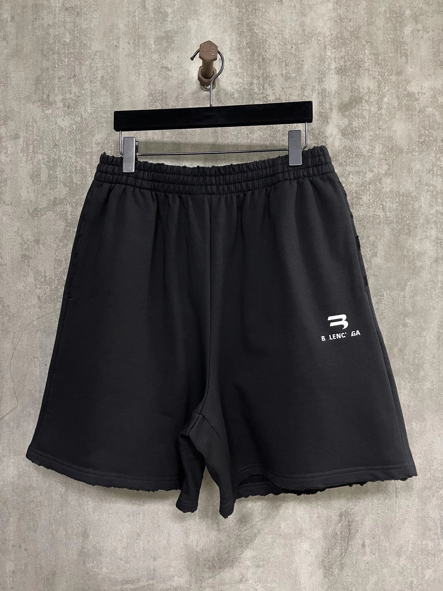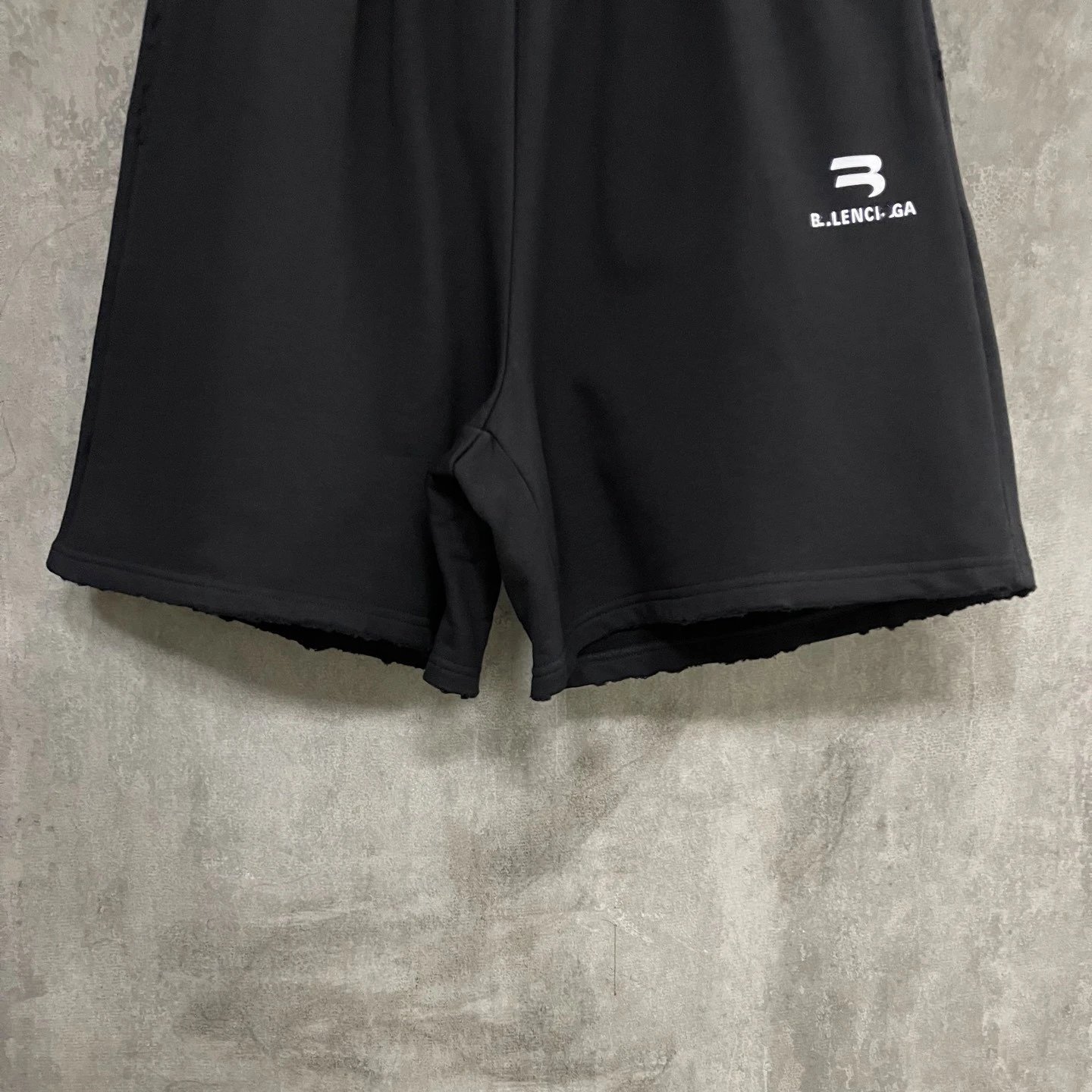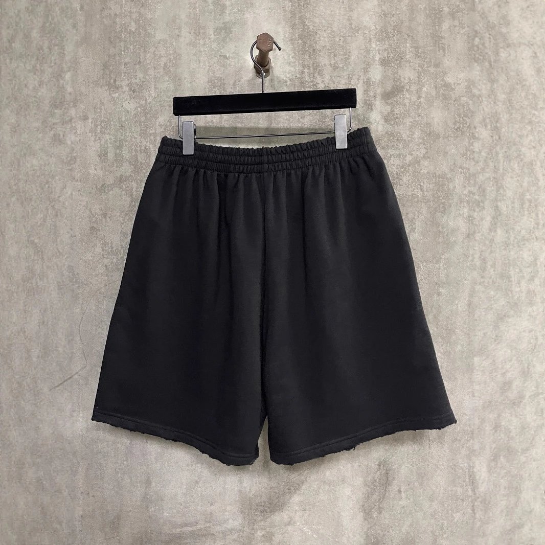 巴黎B家双钩logo印花休闲破洞短裤卫裤五分裤男女