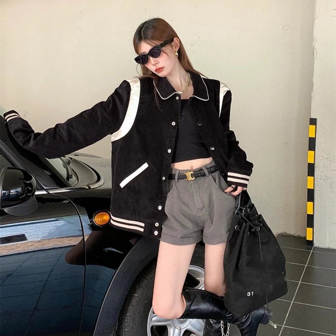 CEL黑色灯芯绒学院风棒球服夹克外套男女