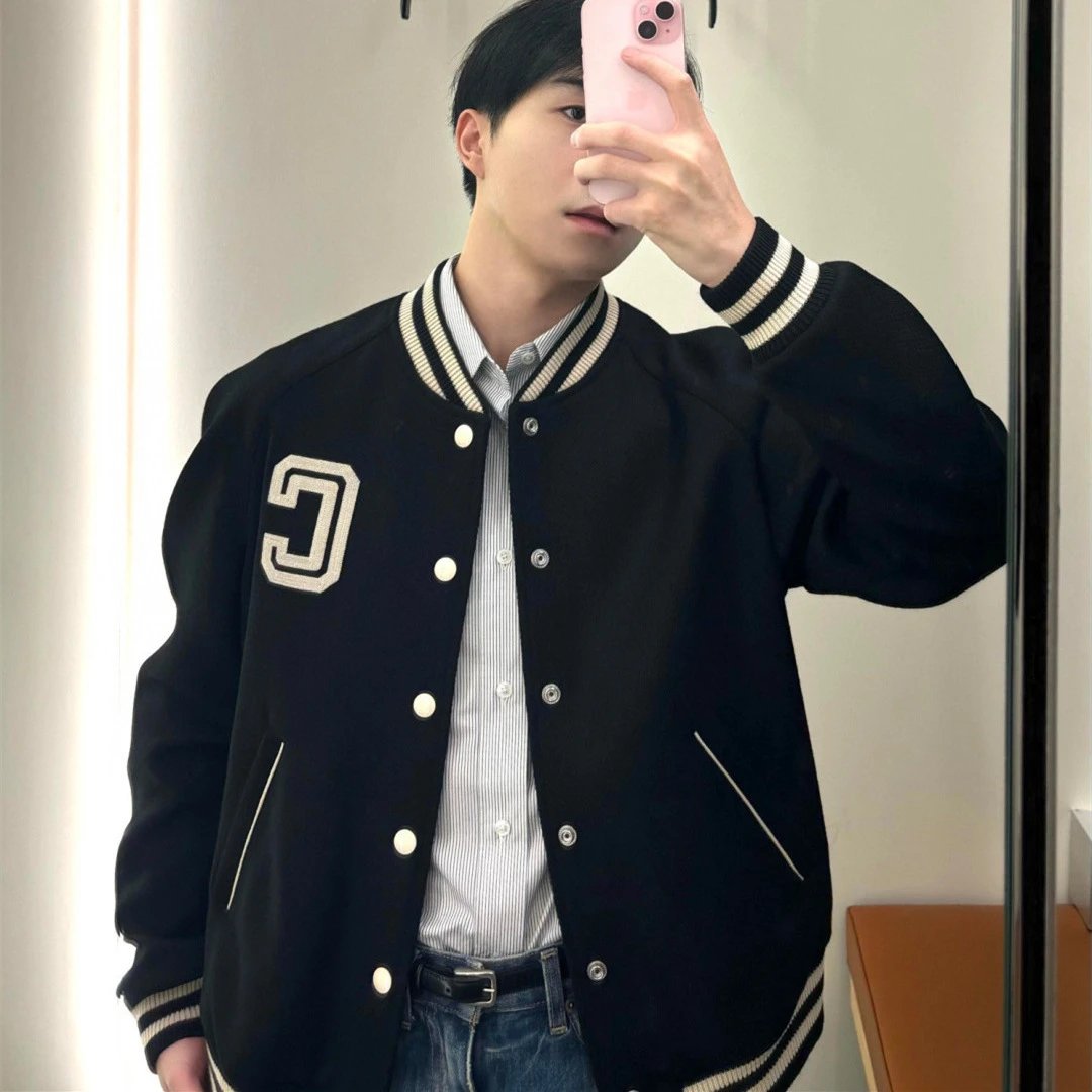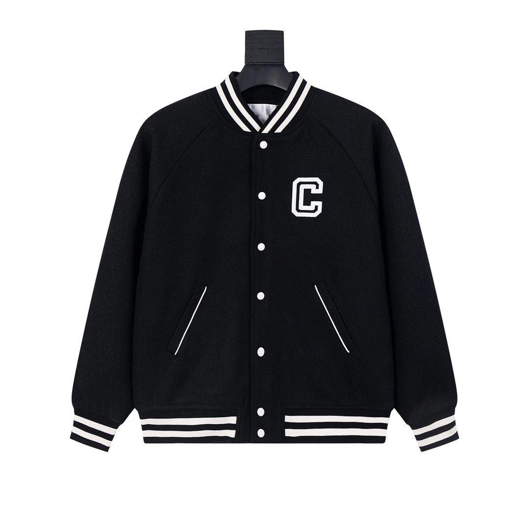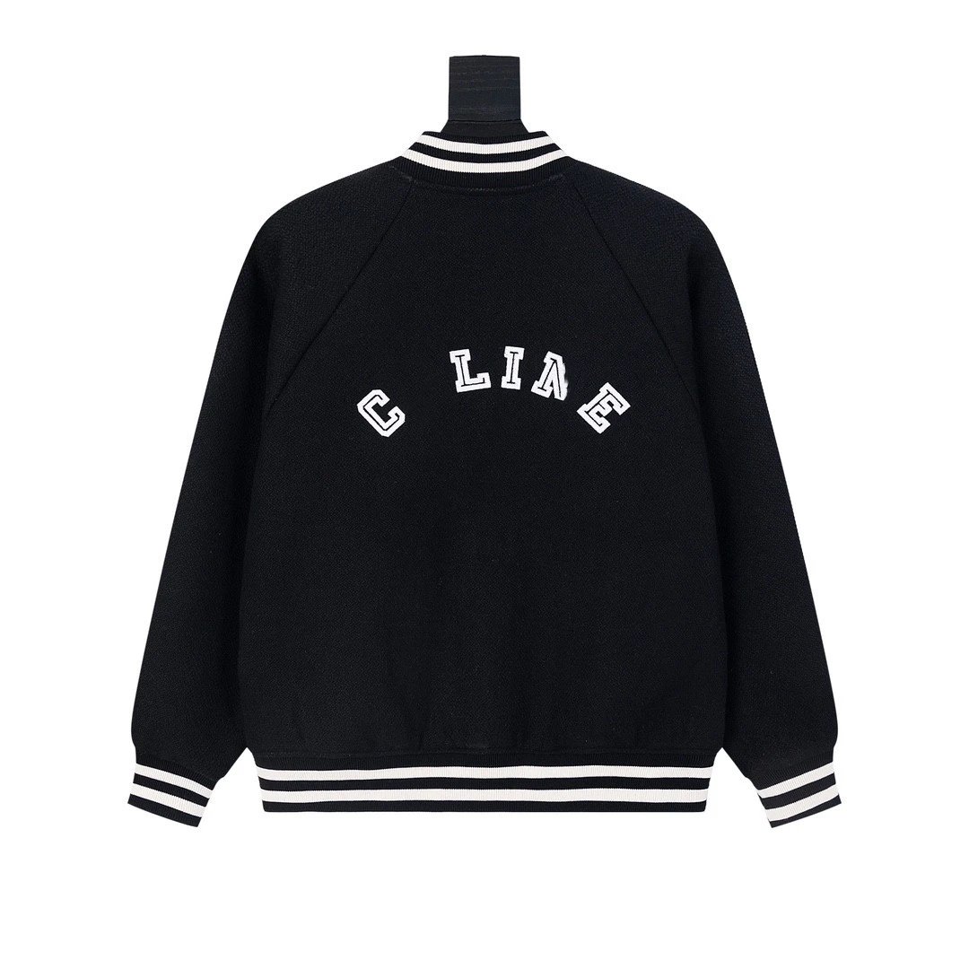 CEL字母刺绣休闲黑色夹克棒球服羊毛外套男女