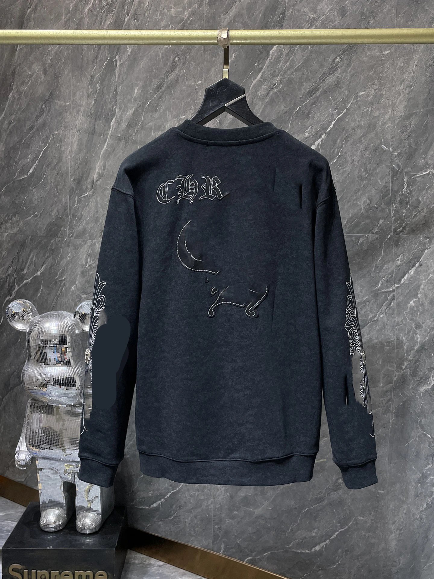 夏季潮牌CH拼皮扎染刺绣圆领卫衣男女款情侣款宽松套头卫衣