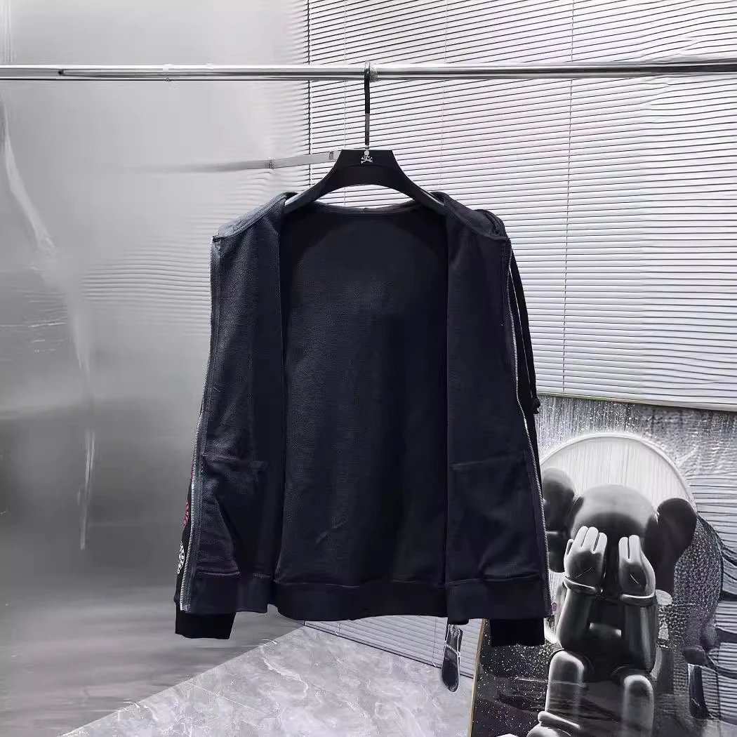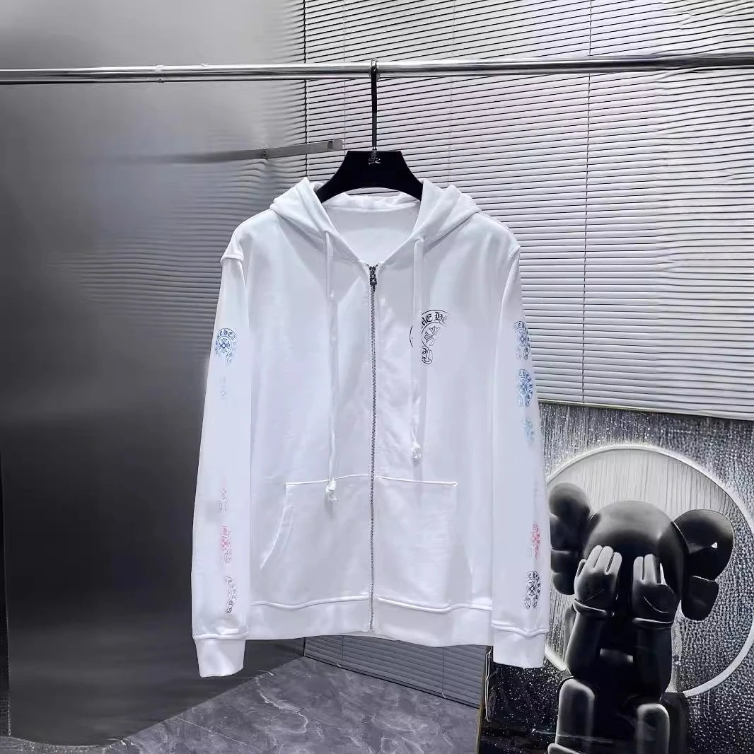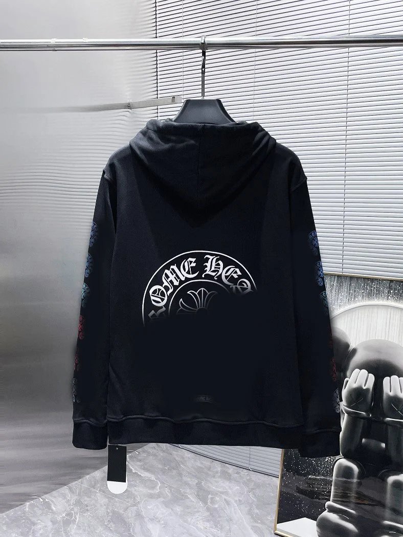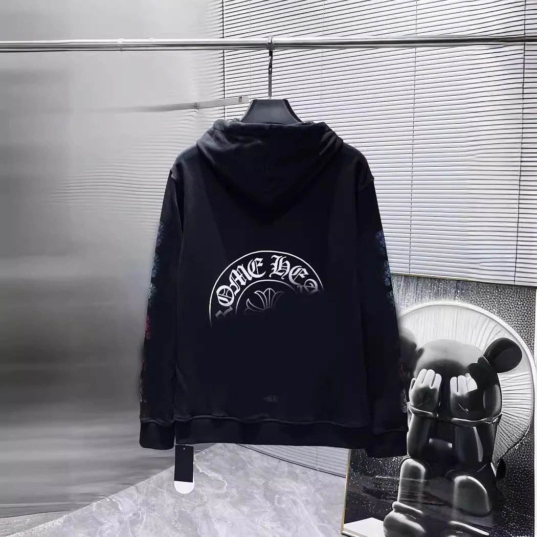 秋冬潮牌CH彩色脊柱渐变小马蹄十字拉链外套帽衫情侣款百搭