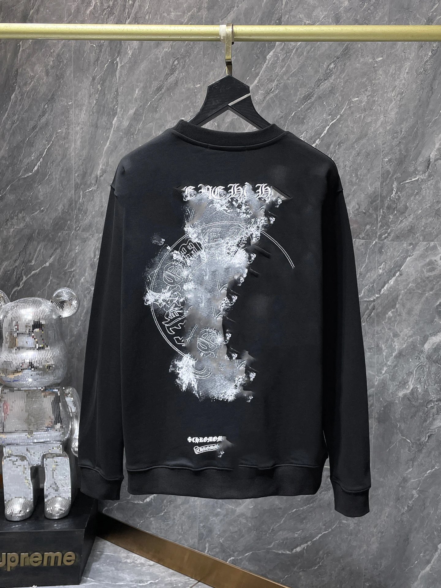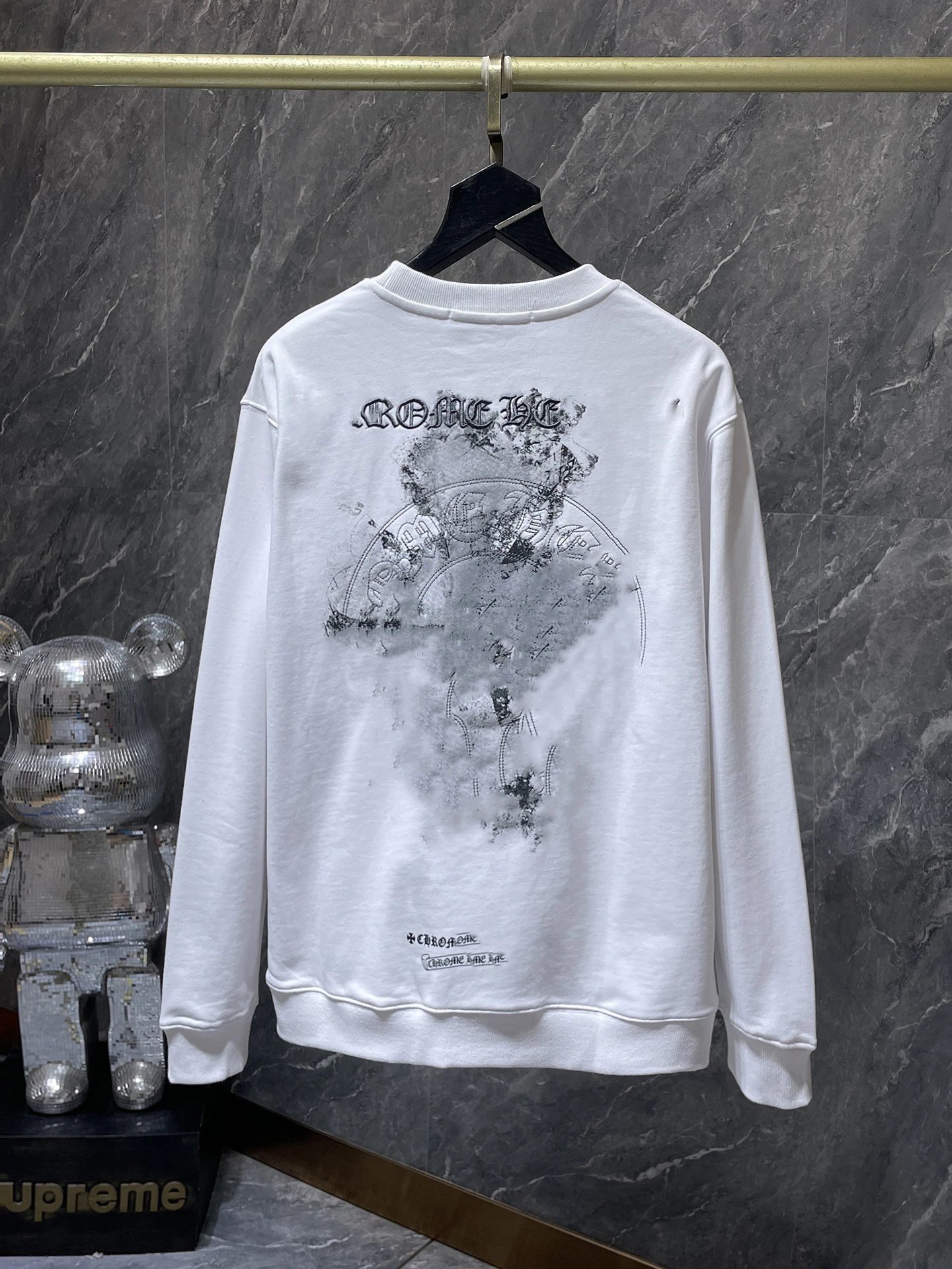 秋冬潮牌CH立体梵文刺绣十字架圆领卫衣套头帽衫情侣装男女款