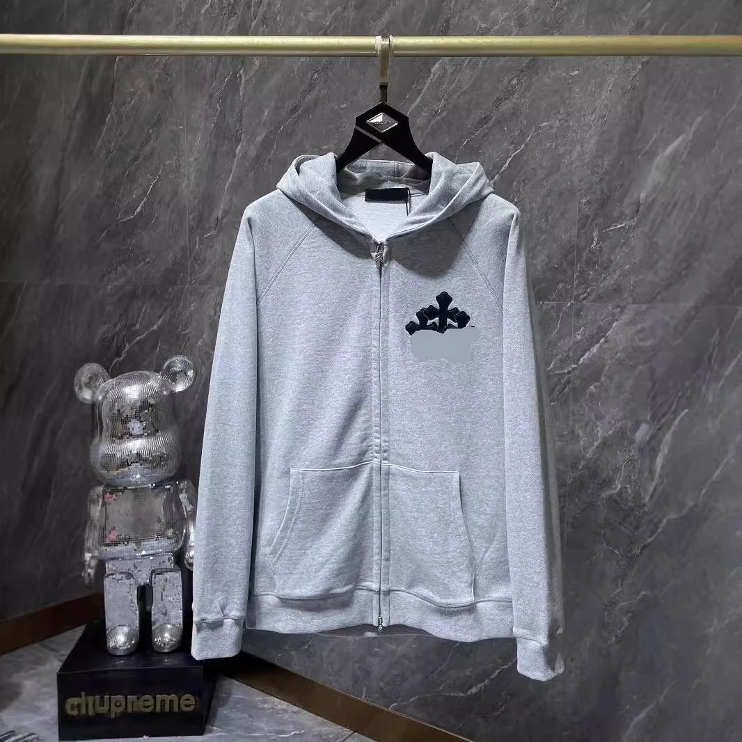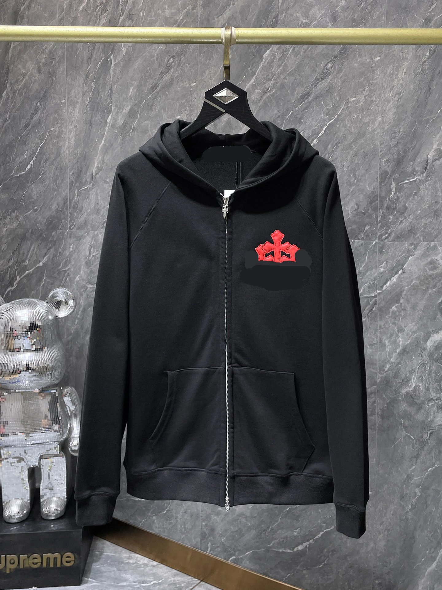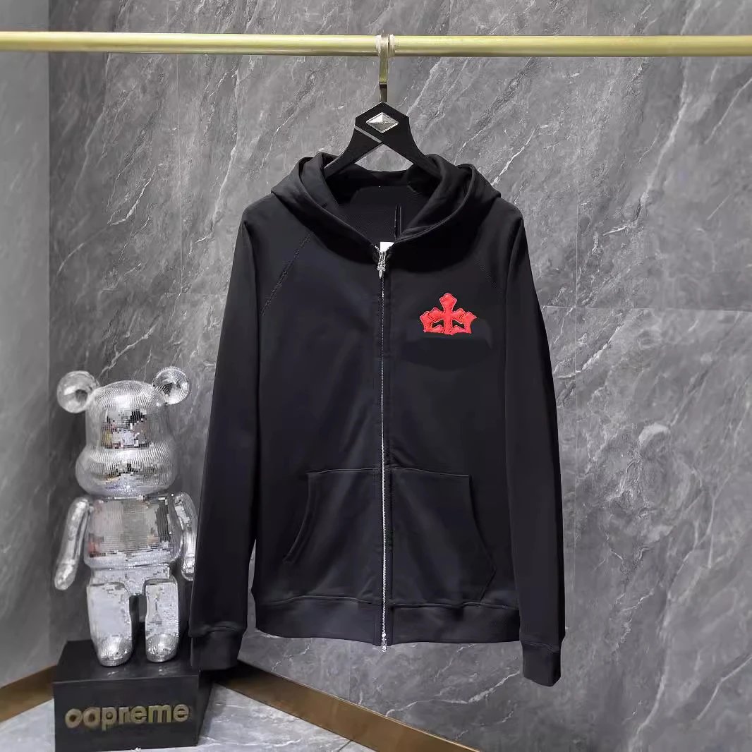 秋冬潮牌CH拼皮十字架长袖拉链卫衣宽松休闲套头帽衫情侣装