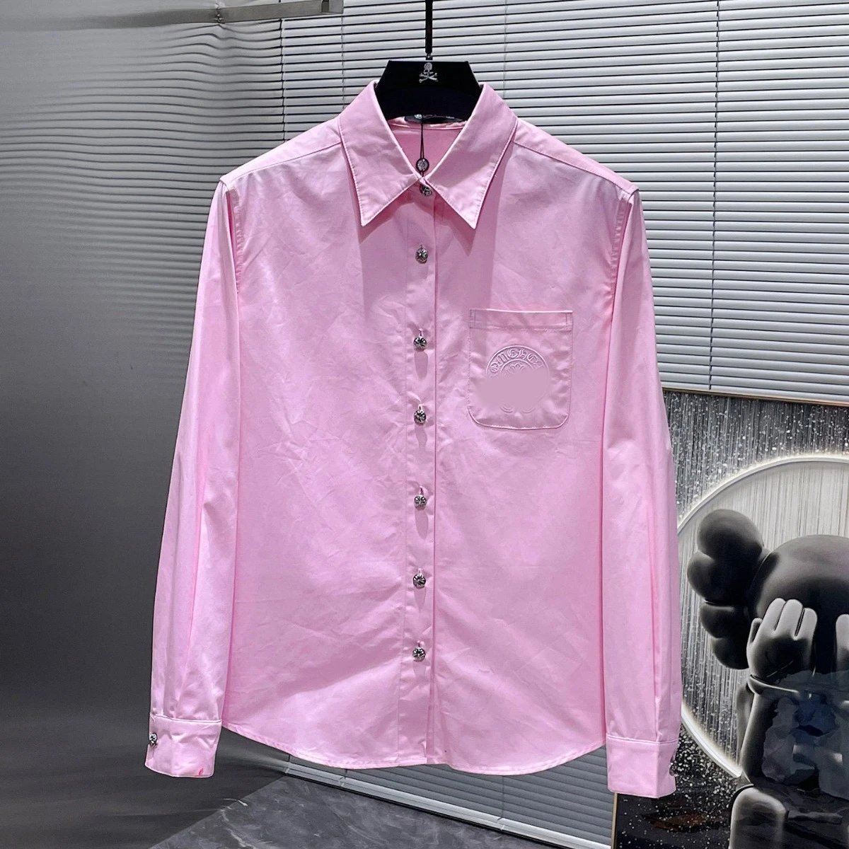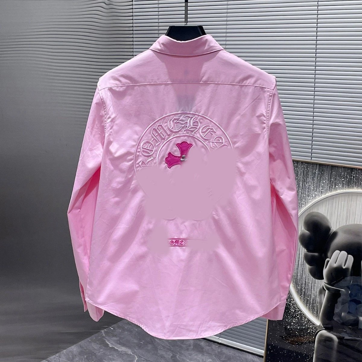 秋冬CH刺绣彩色经典十字架马蹄拼皮柳丁粉色衬衫男女款情侣