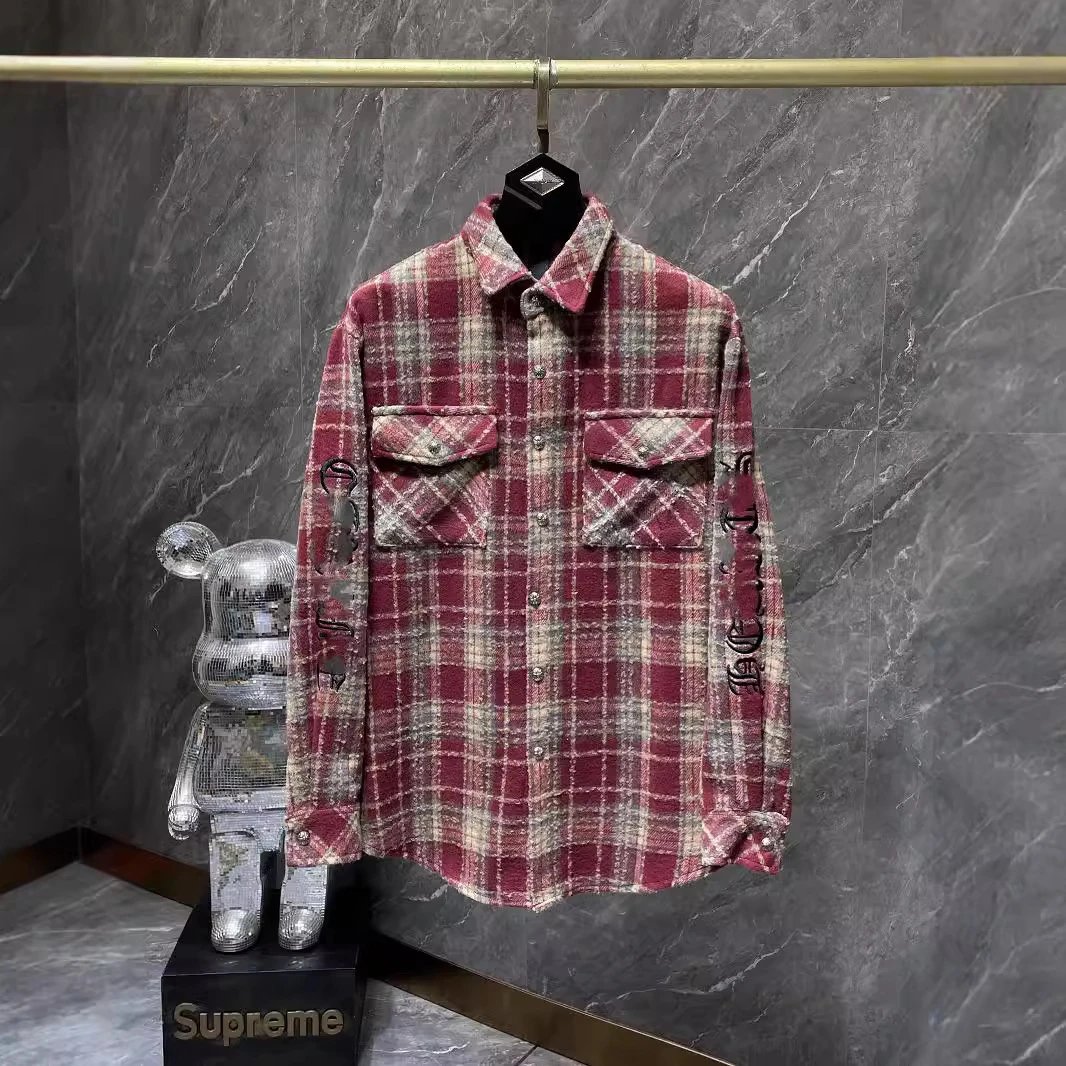 CH刺绣梵文刺绣贴皮十字架毛呢衬衫后背字母刺绣logo贴皮外套男女