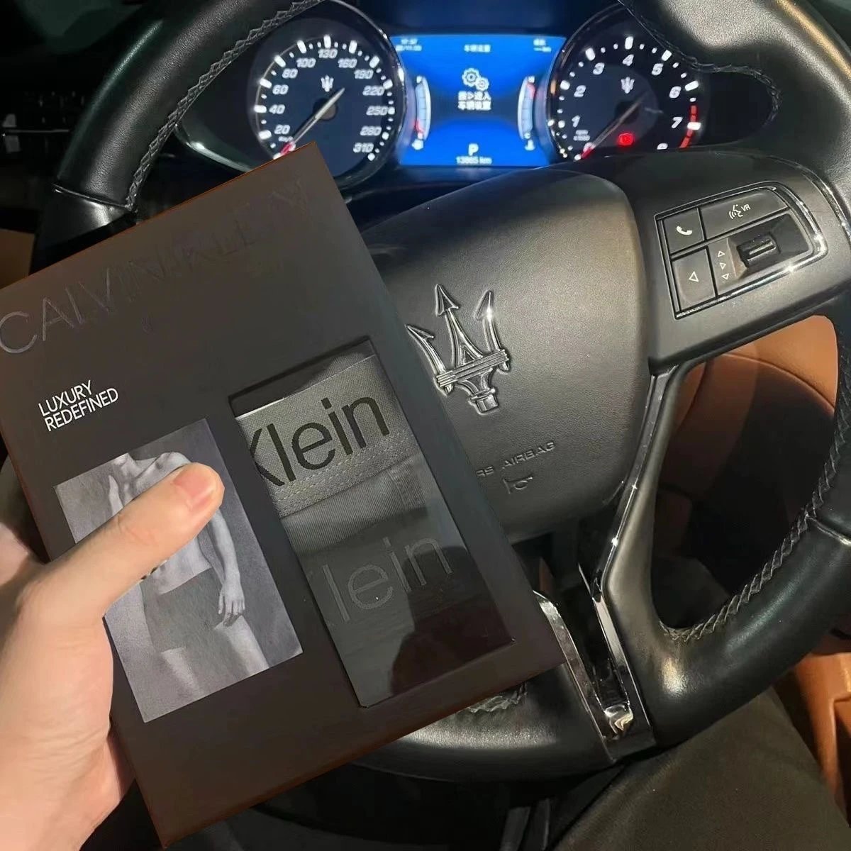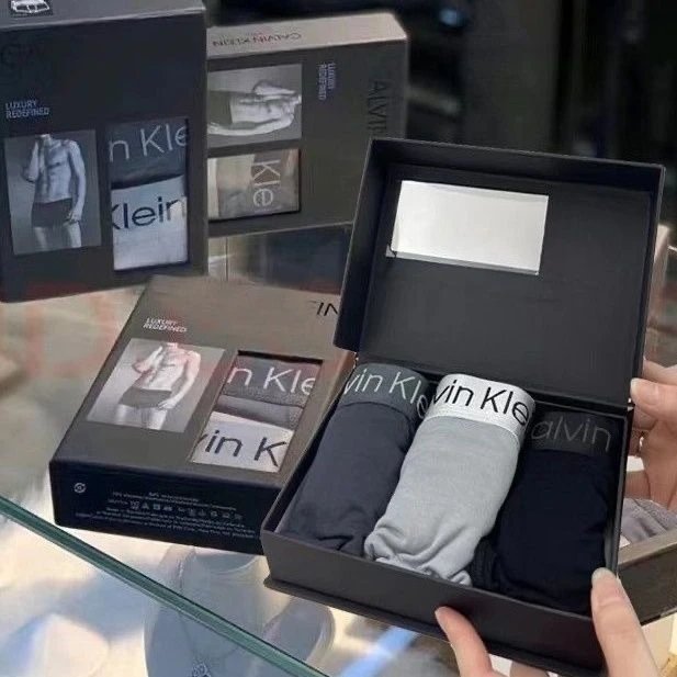CK男士平角内裤莫代尔男中腰透气纯色四角裤礼盒装3条发