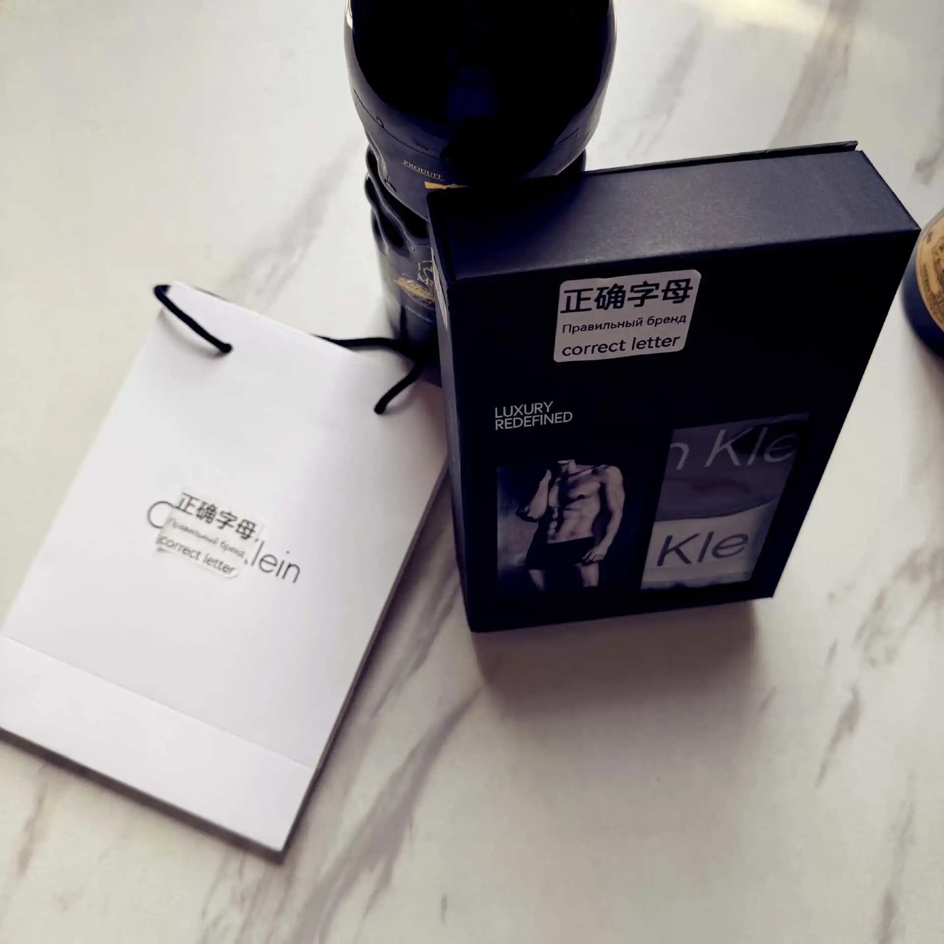 CK男士平角内裤纯棉男中腰透气纯色四角裤礼盒装3条发