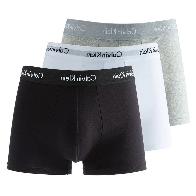 CK男士平角内裤纯棉男中腰透气纯色四角裤礼盒装3条发