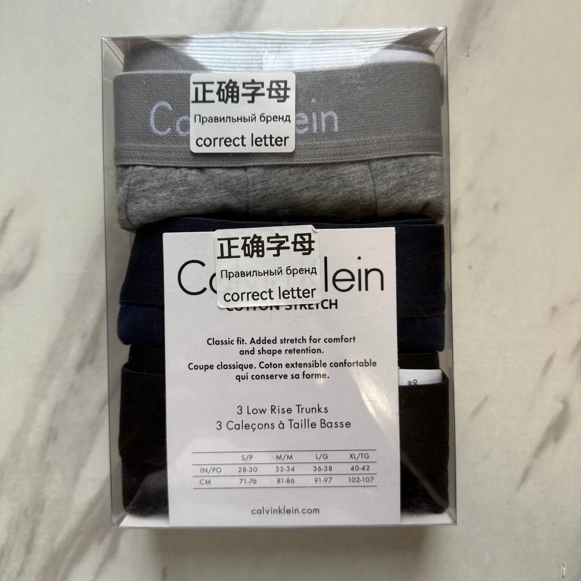 CK男士莫代尔内裤中腰透气纯色四角礼盒装3条平角