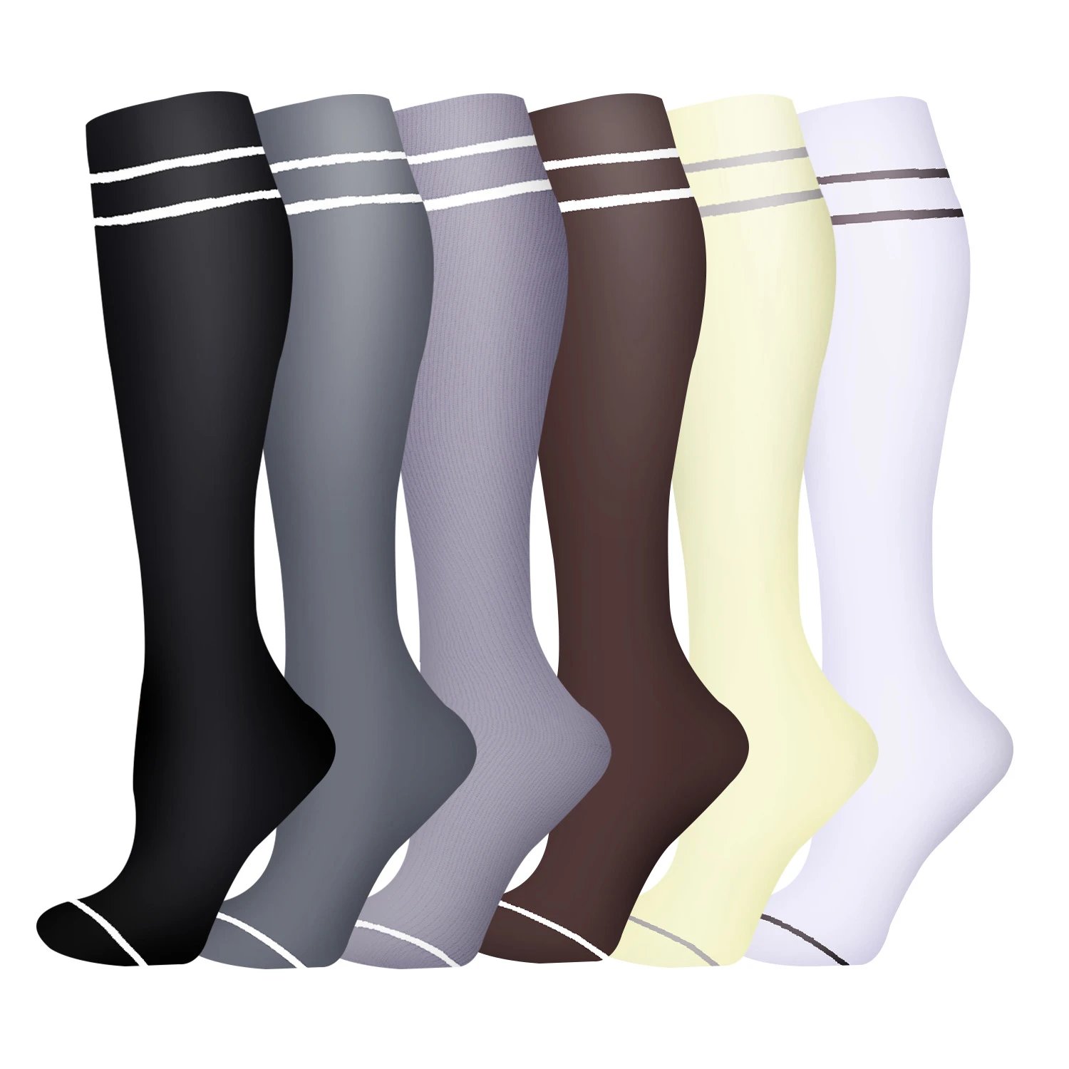 6双组合运动压力袜户外健身跑步压缩袜弹力美腿小腿袜