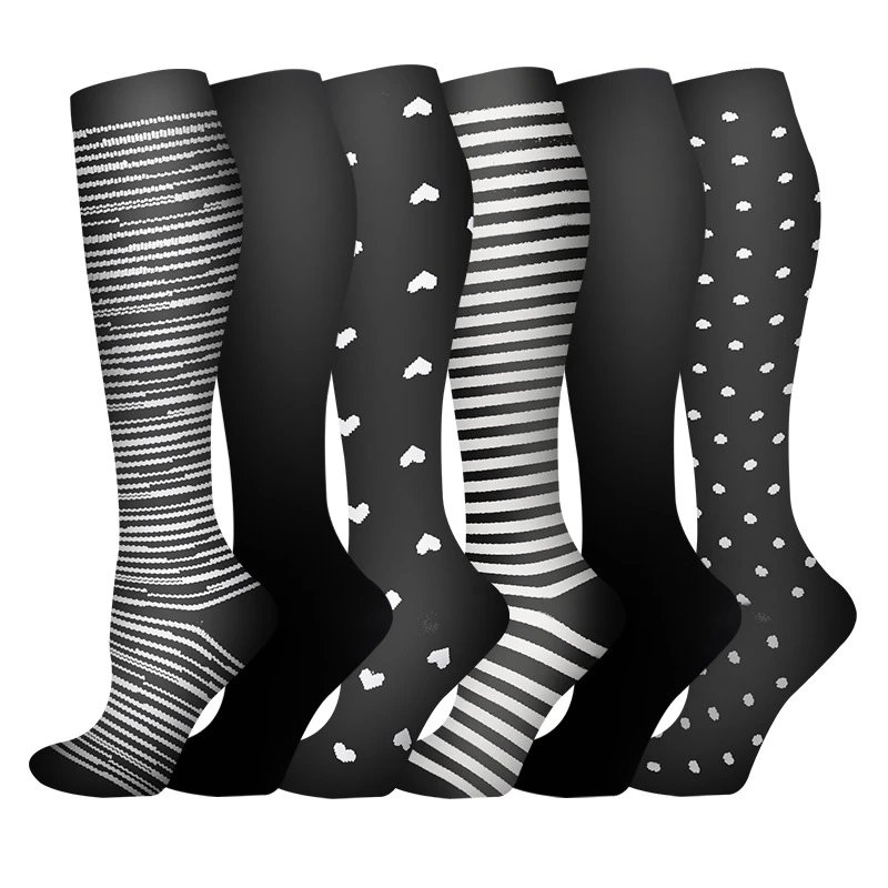 跨境组合装彩绘运动压力袜中长筒弹力压缩袜嘻哈防曲张小腿袜