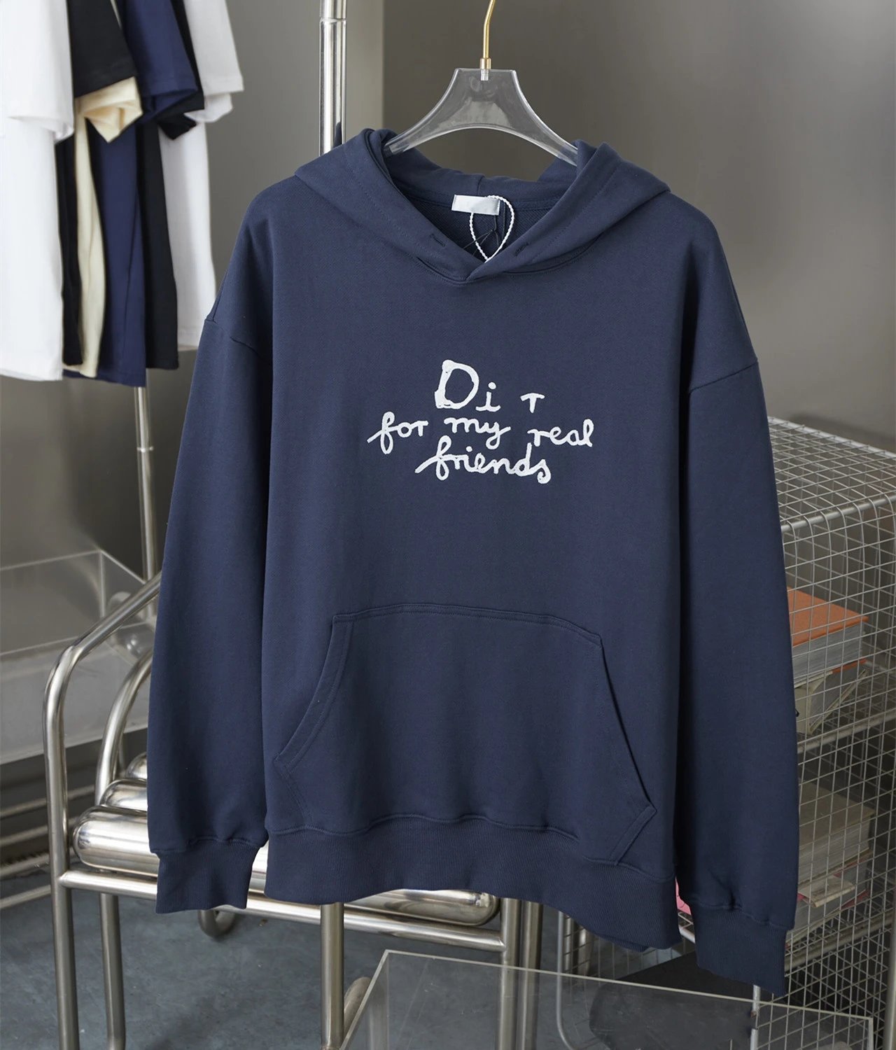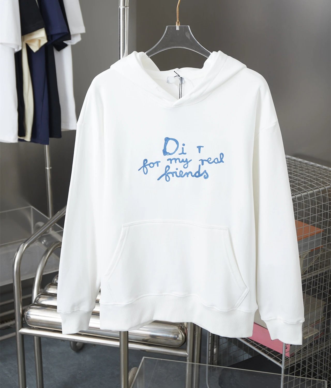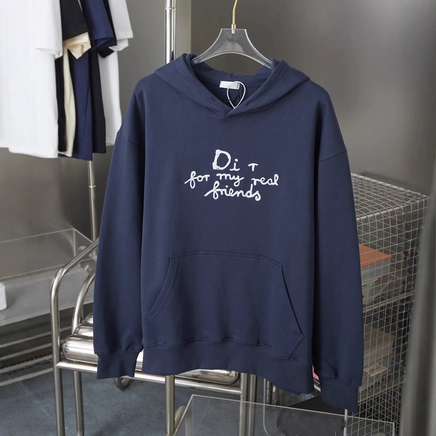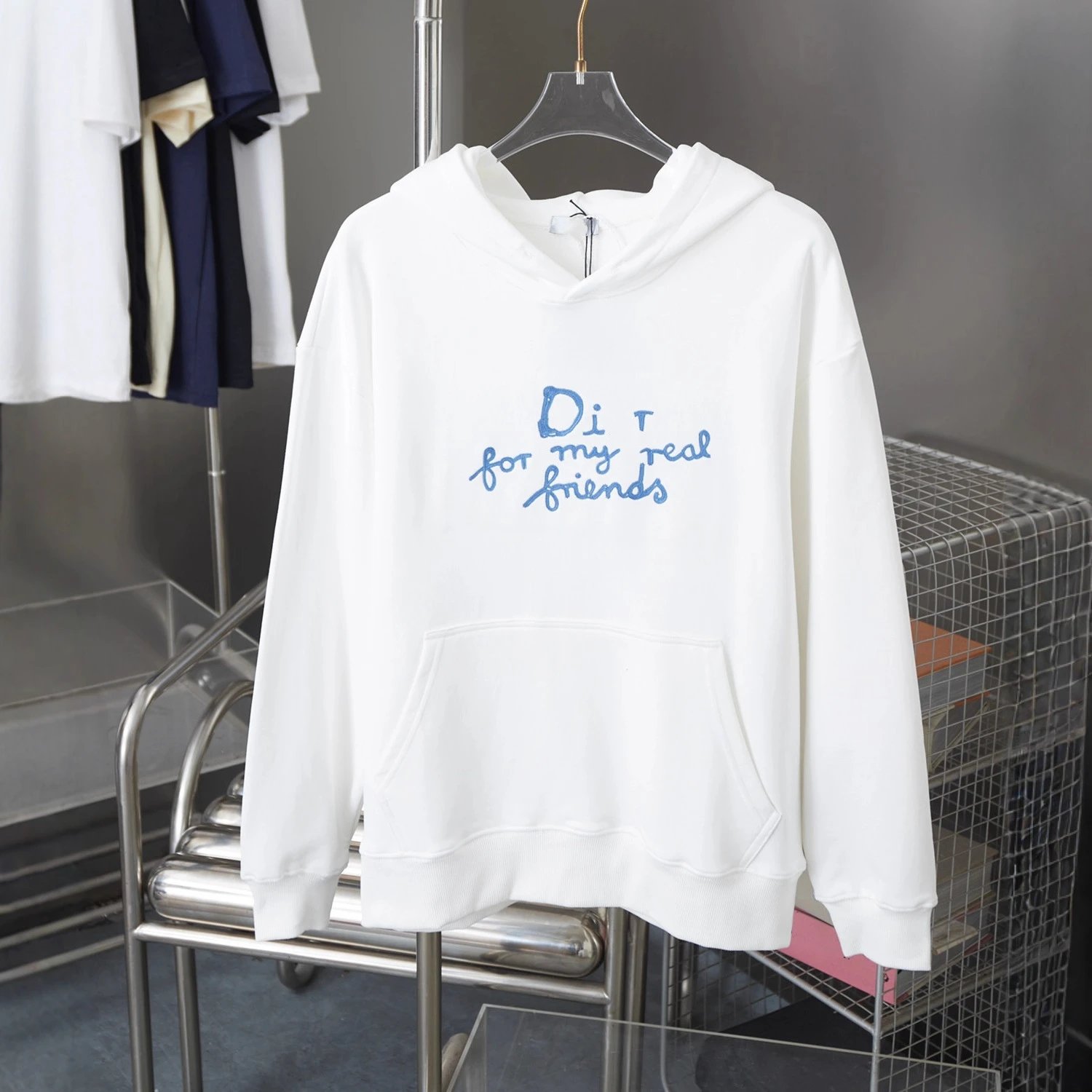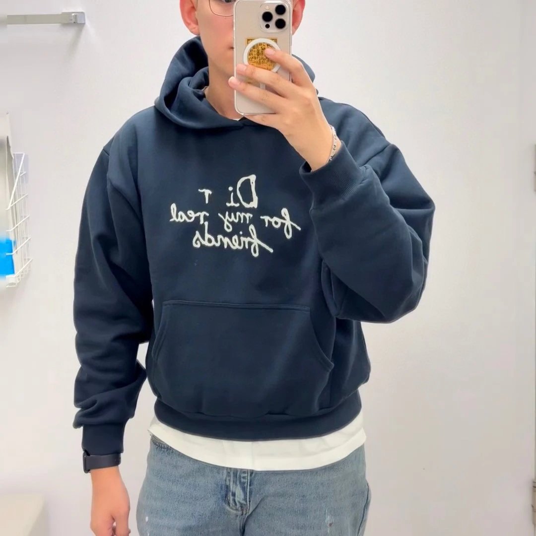 高品DI家25SS早秋新款绳绣字母刺绣连帽长袖卫衣帽衫男女