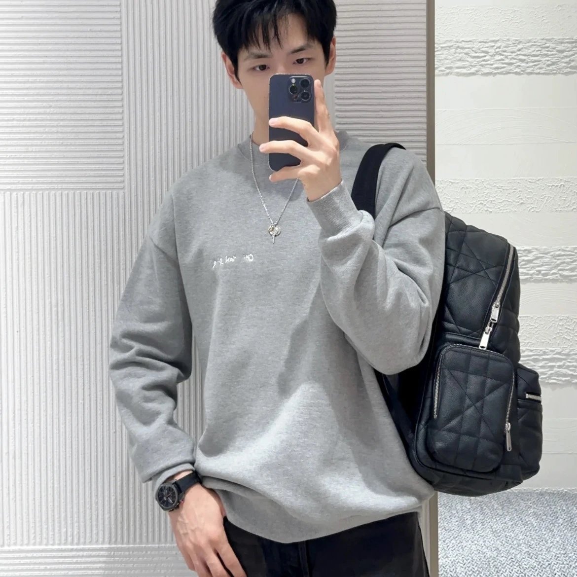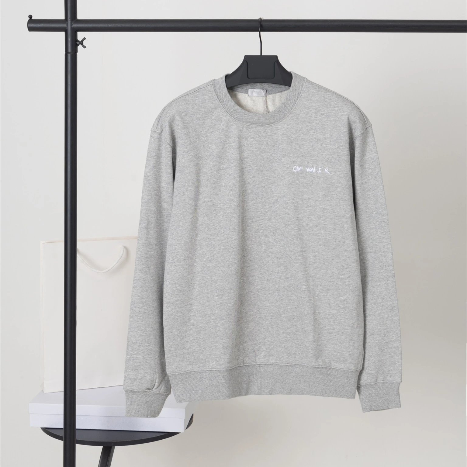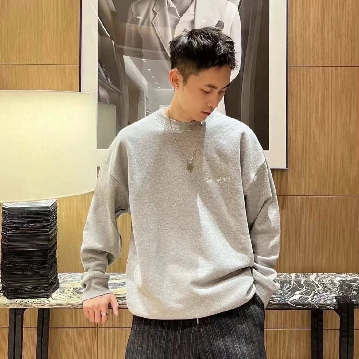 高品DI家25SS早秋新款刺绣字母纯色简约圆领毛圈卫衣男女