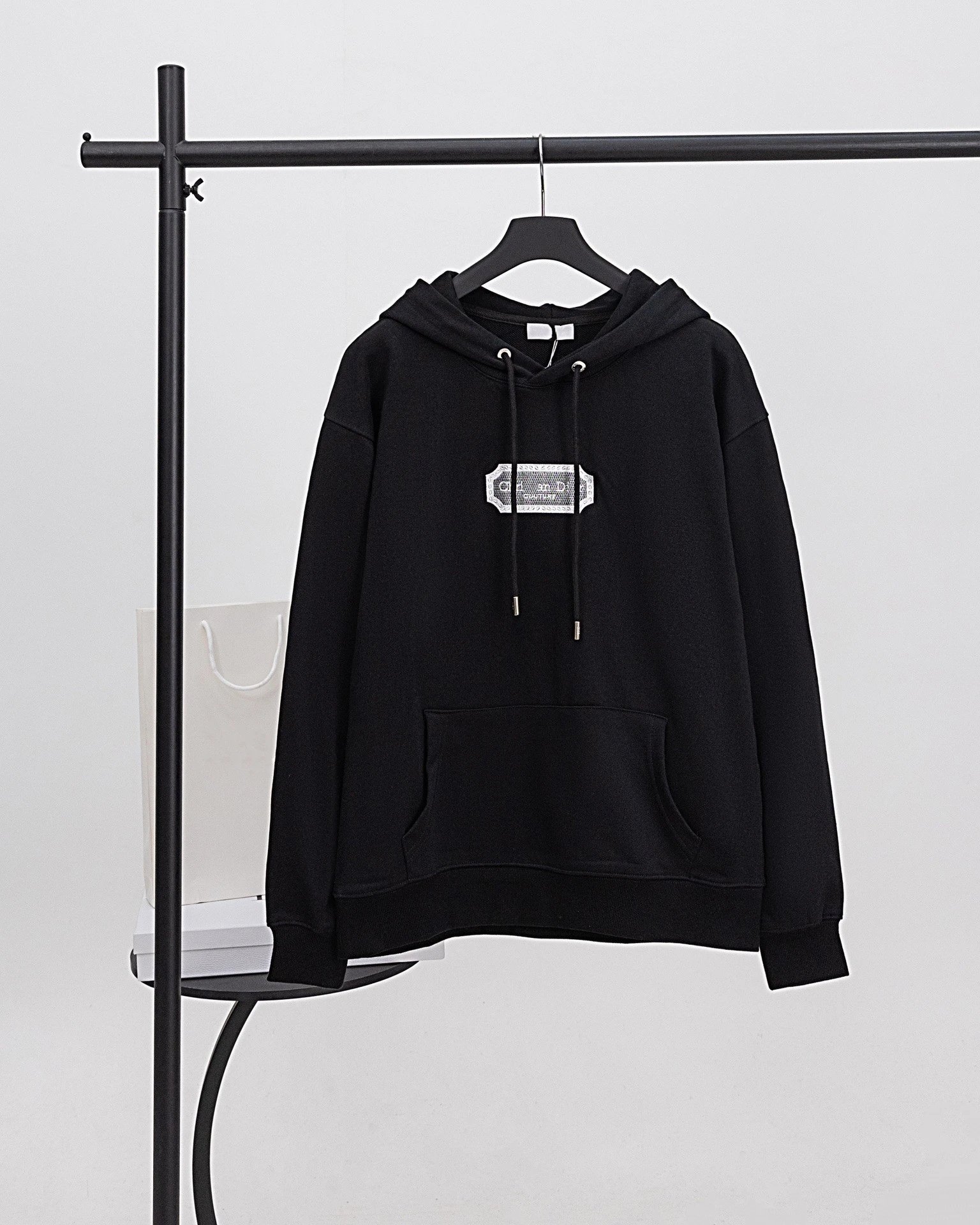 本DI家经典胸前方形字母徽标刺绣连帽卫衣帽衫男女