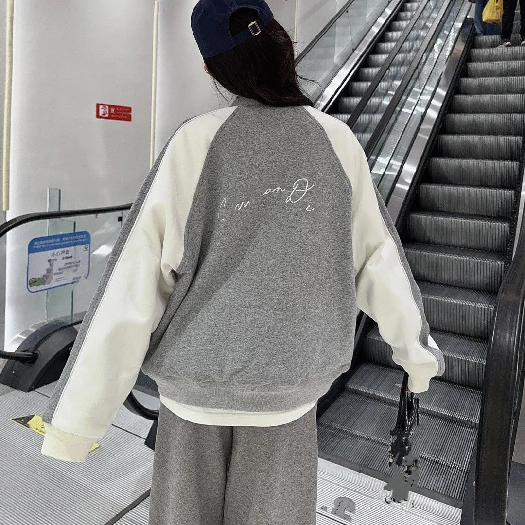 DI家新款铃兰花刺绣拼接撞色夹克棒球服外套男女