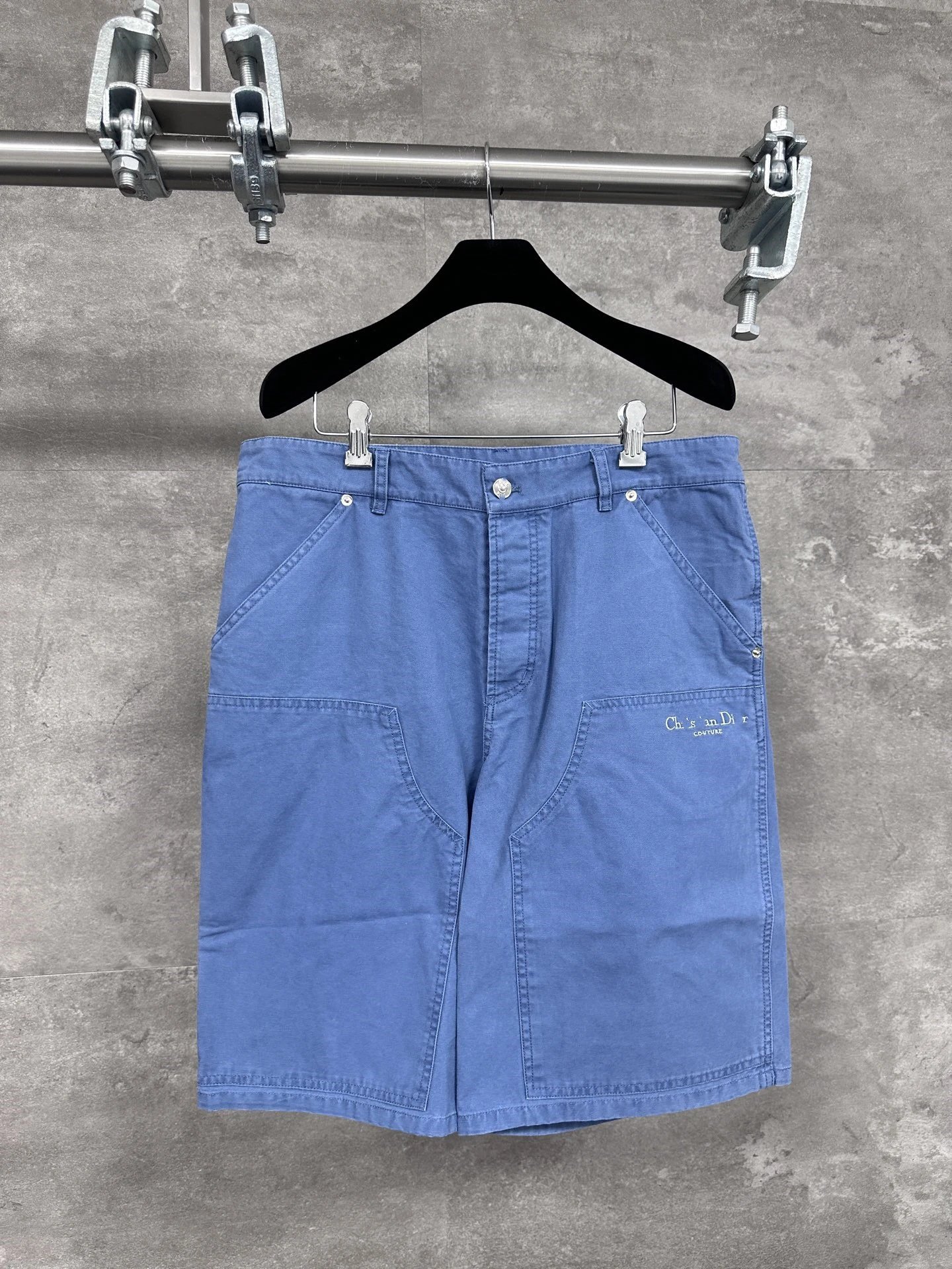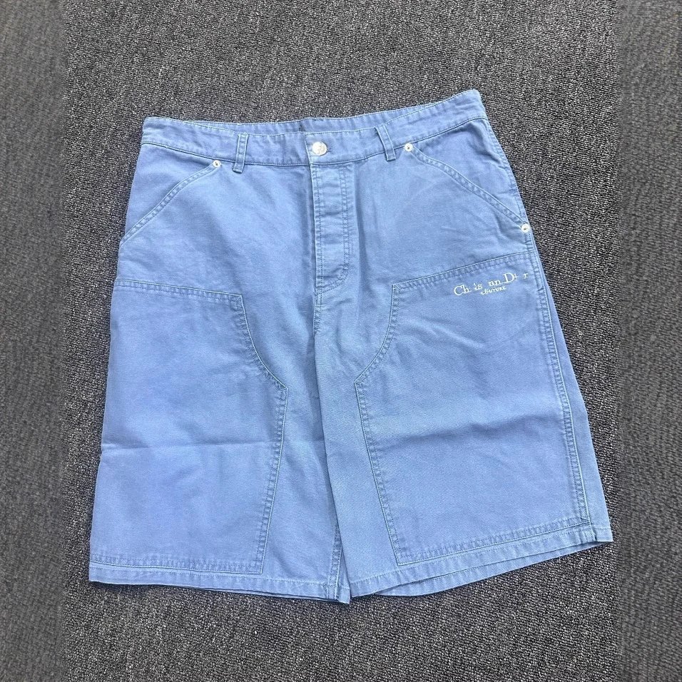 DI家平纹针织刺绣字母图案牛仔短裤五分裤男女