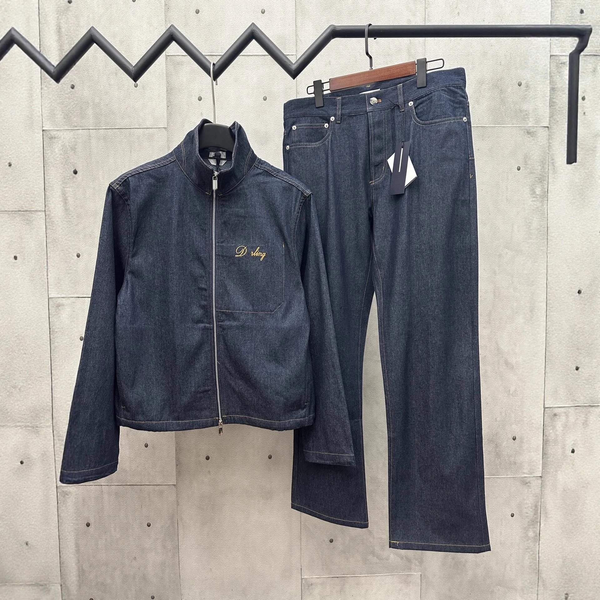 新款DI家工装立领直筒牛仔夹克牛仔长裤套装男女