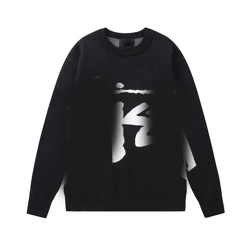 FW22大Logo宽松套头圆领手工编织宽松廓形针织复古毛衣男女同款