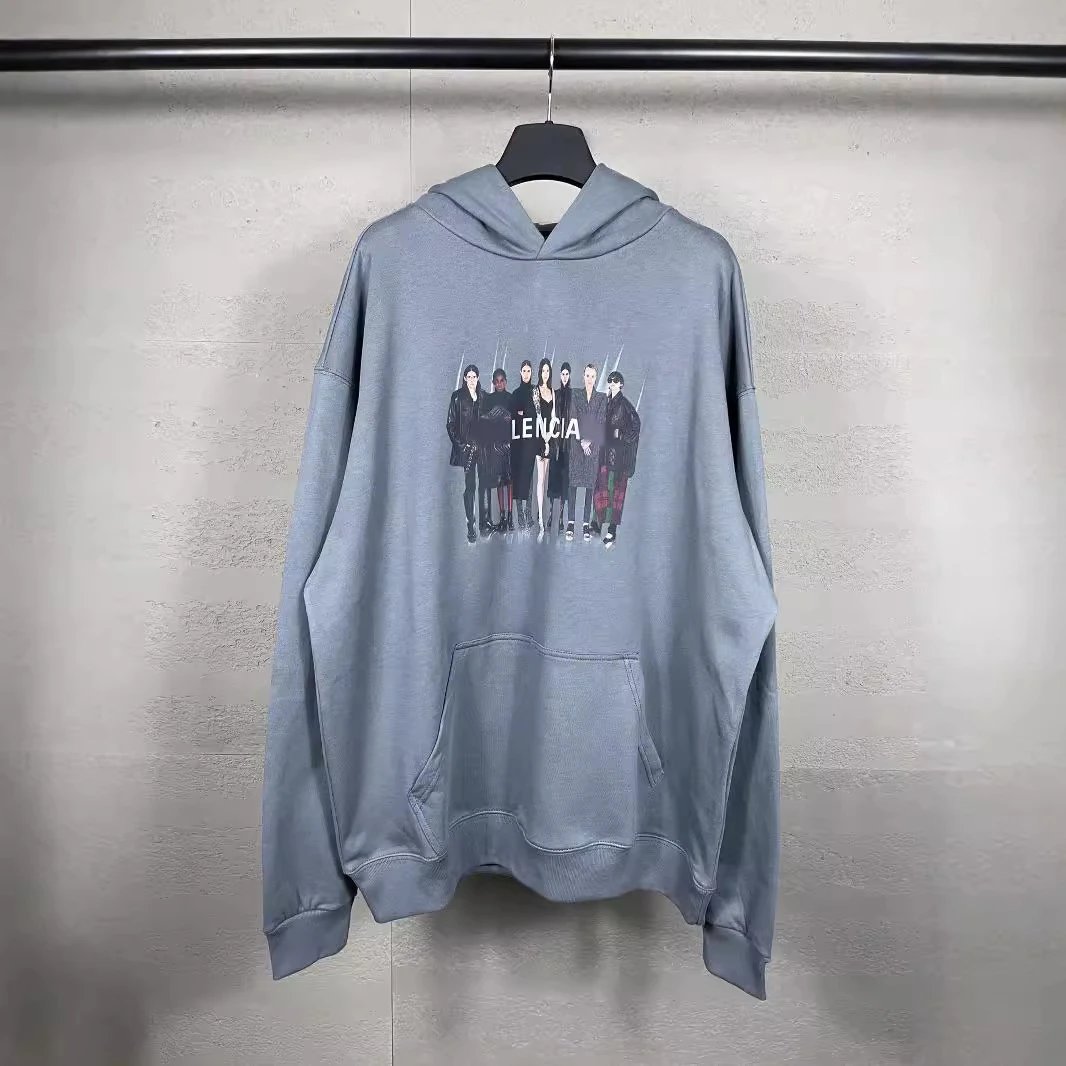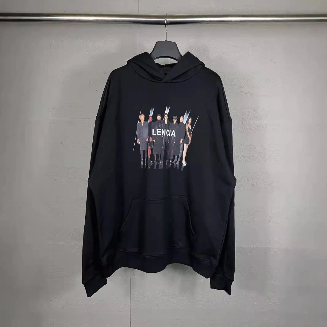 秋冬巴黎经典款人像乐队直喷印花连帽卫衣宽松休闲男女款帽衫情侣