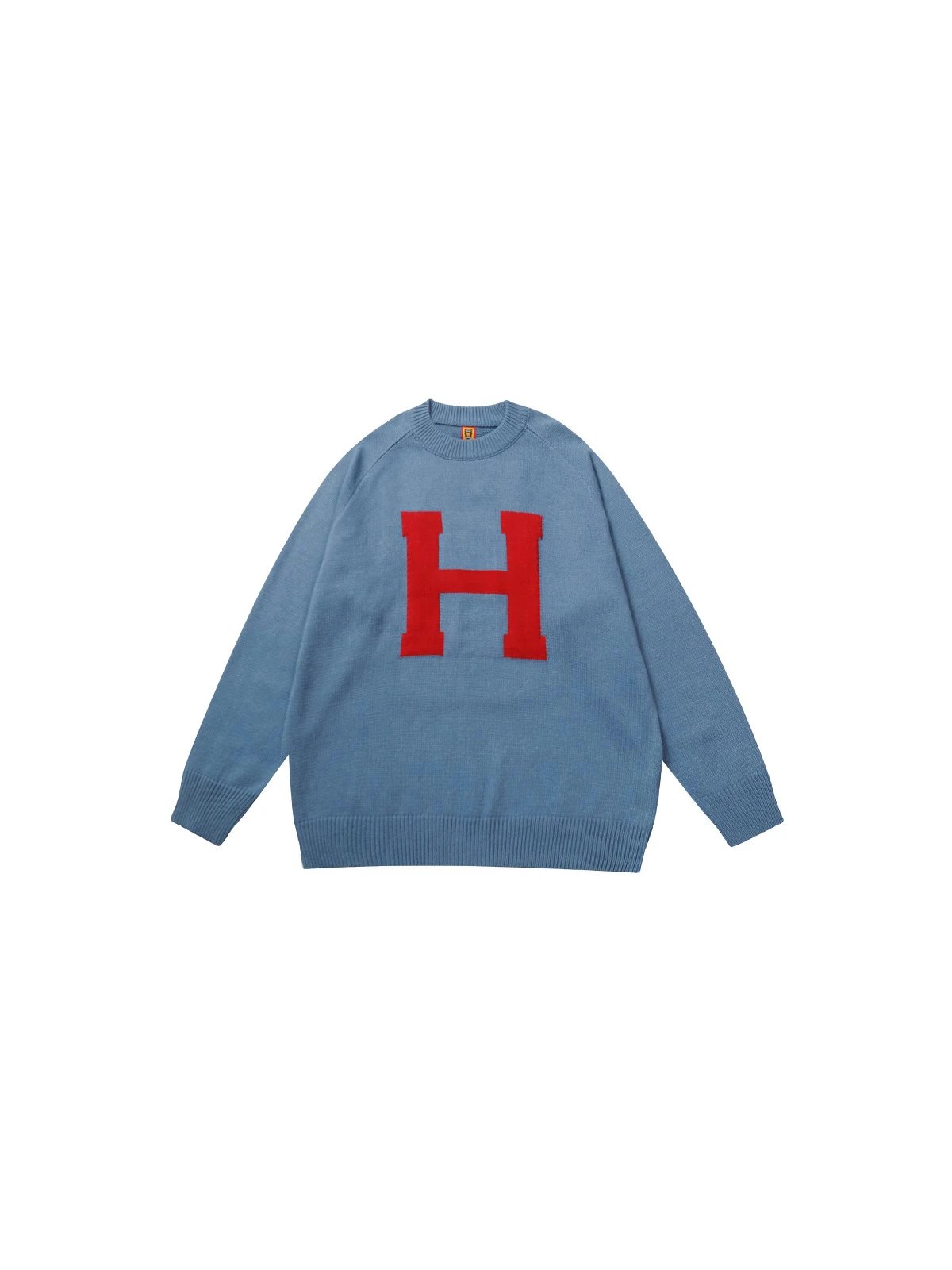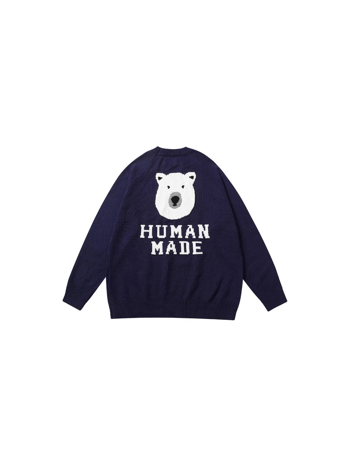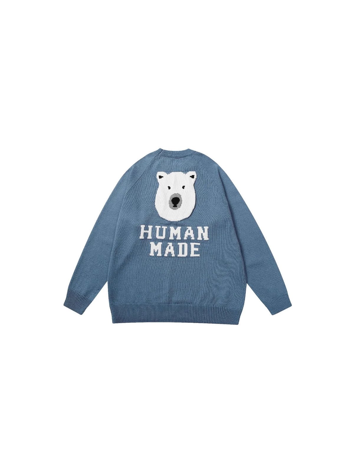 HUMAN 日系复古背后北极熊卡通针织衫毛衣字母长袖男女款潮外套