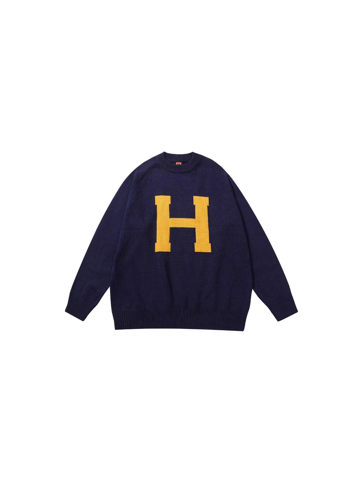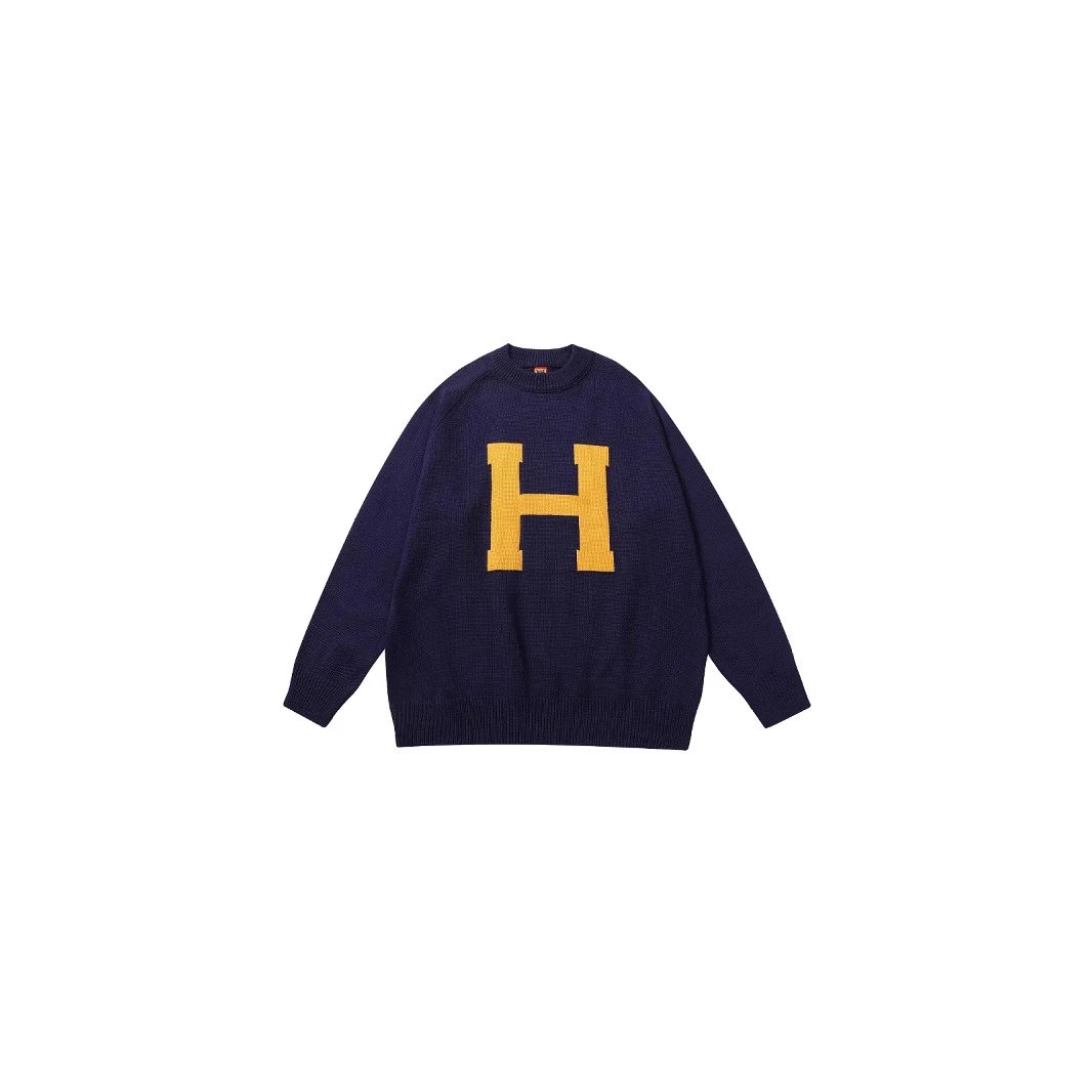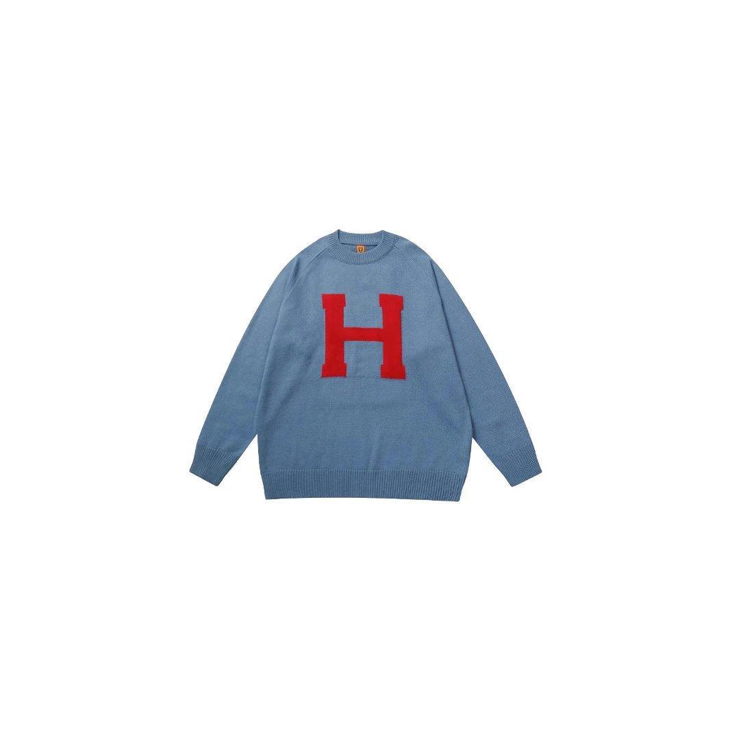 HUMAN 日系复古背后北极熊卡通针织衫毛衣字母长袖男女款潮外套