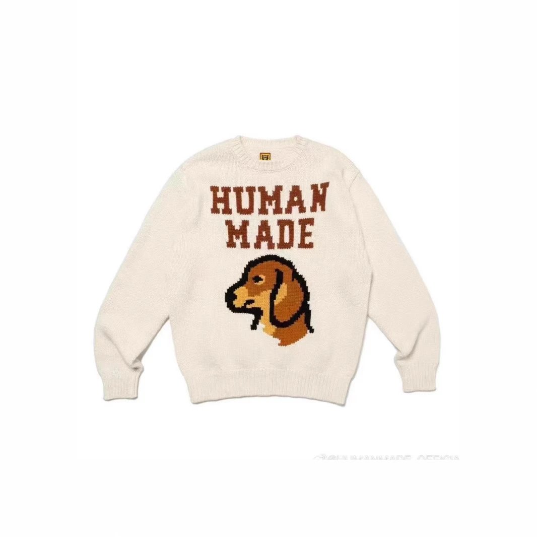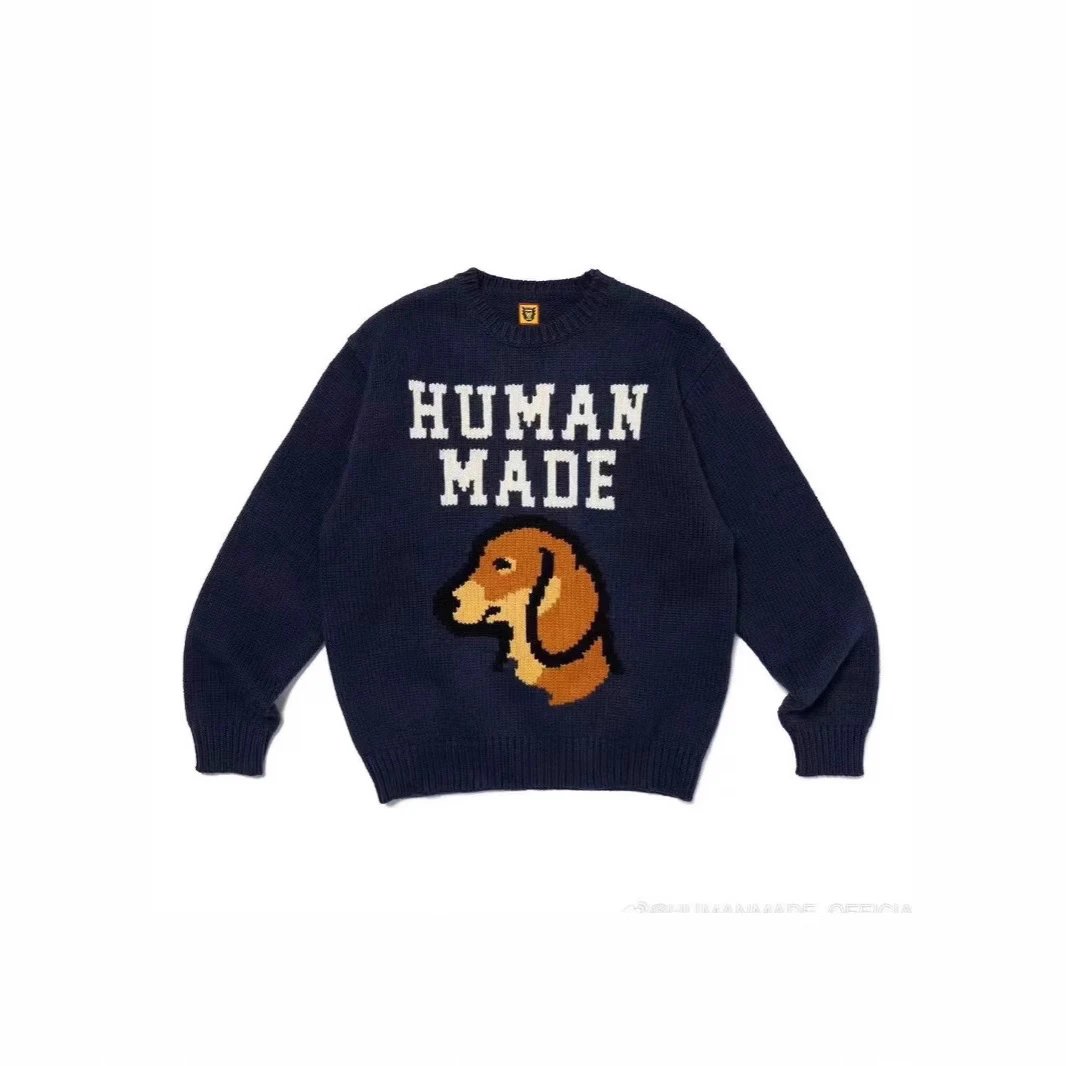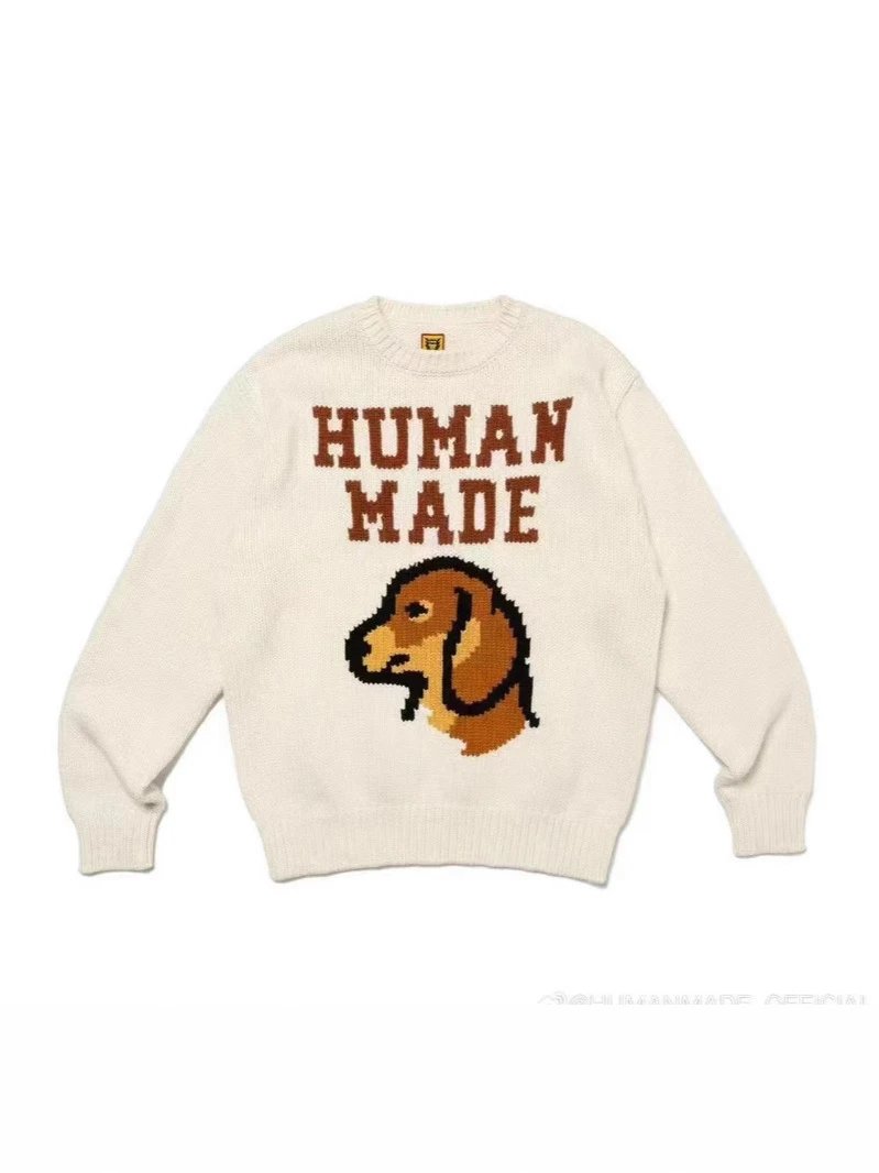 日系潮牌HUMAN 狗狗动物图案印花毛衣秋冬休闲圆领情侣针织衫
