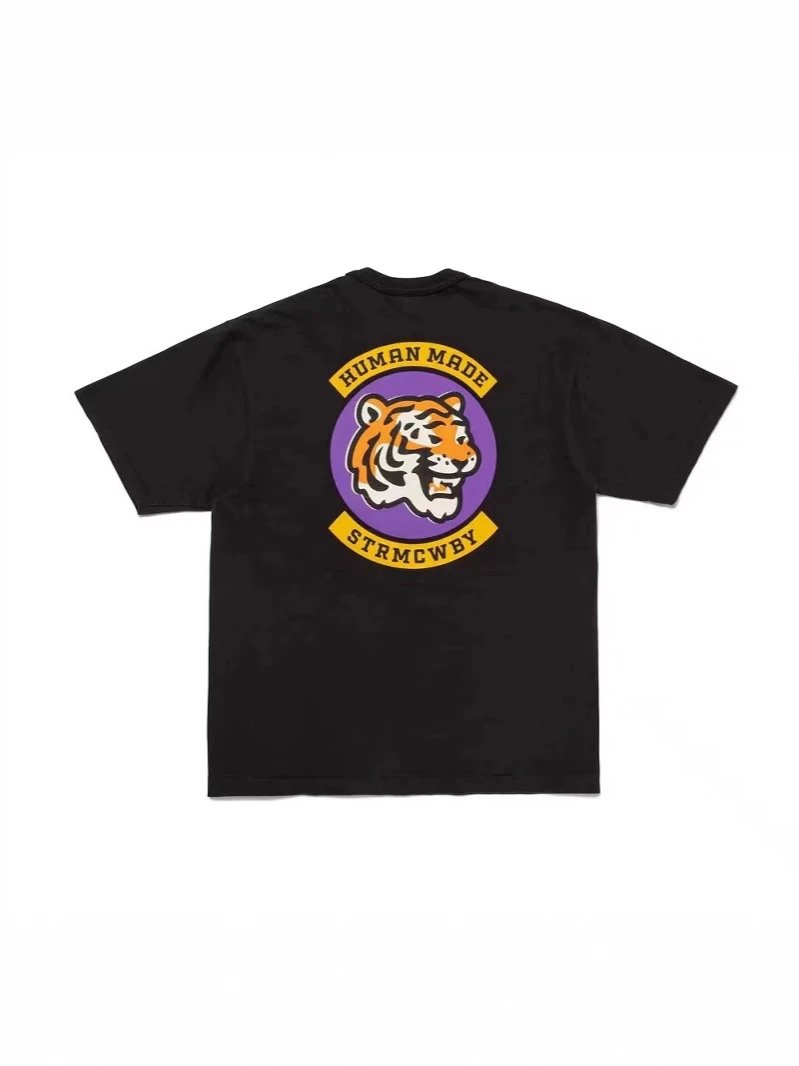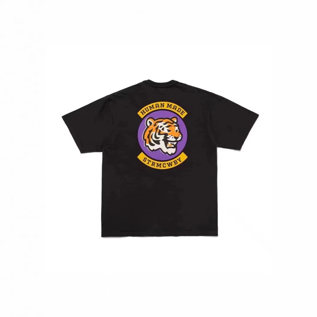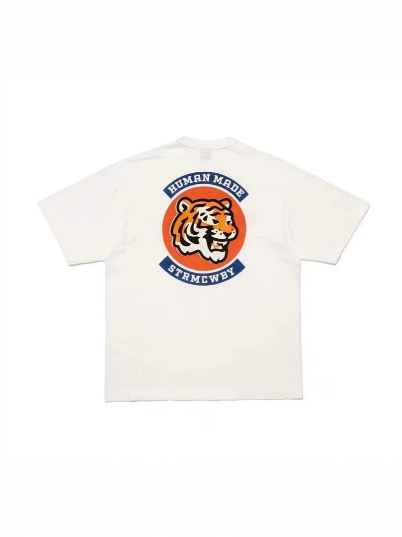 日系潮牌HUMAN 老虎头印花图案圆领款T恤宽松休闲短袖男女款