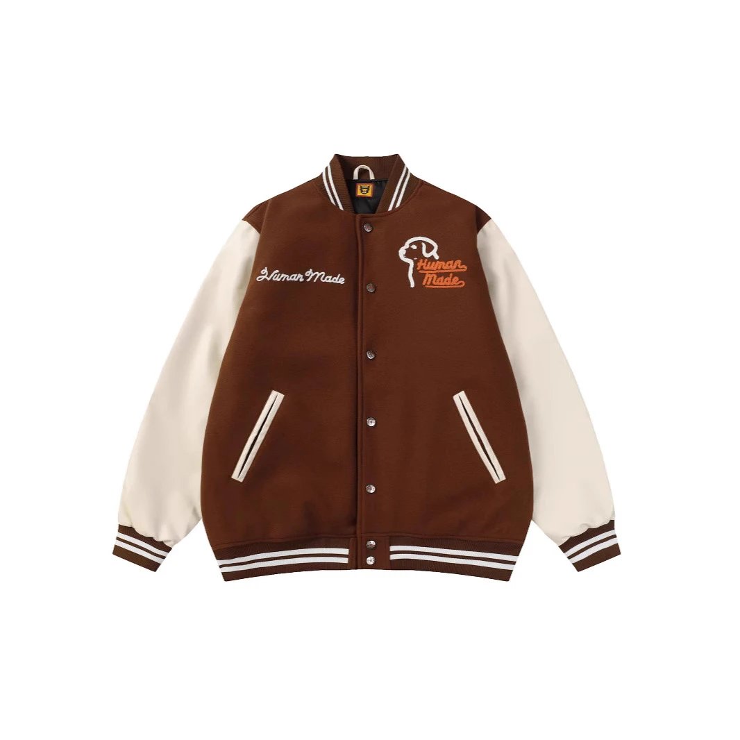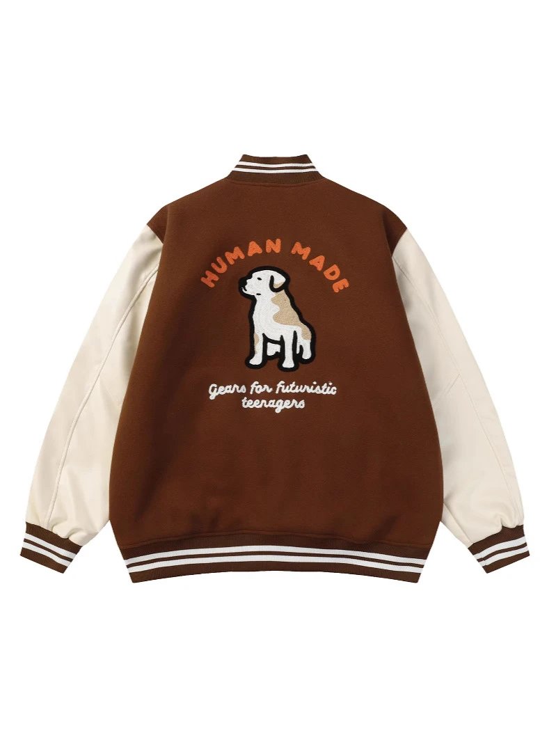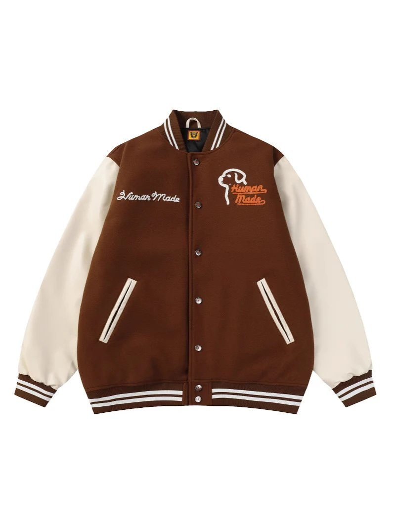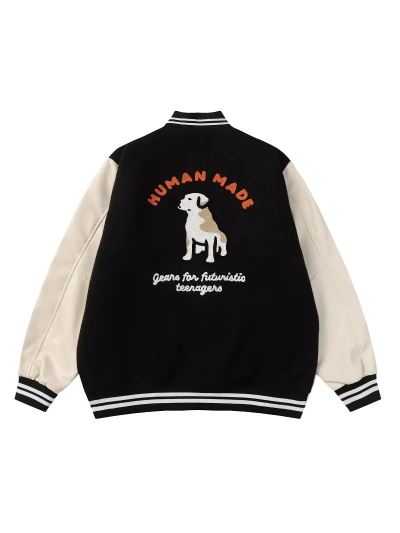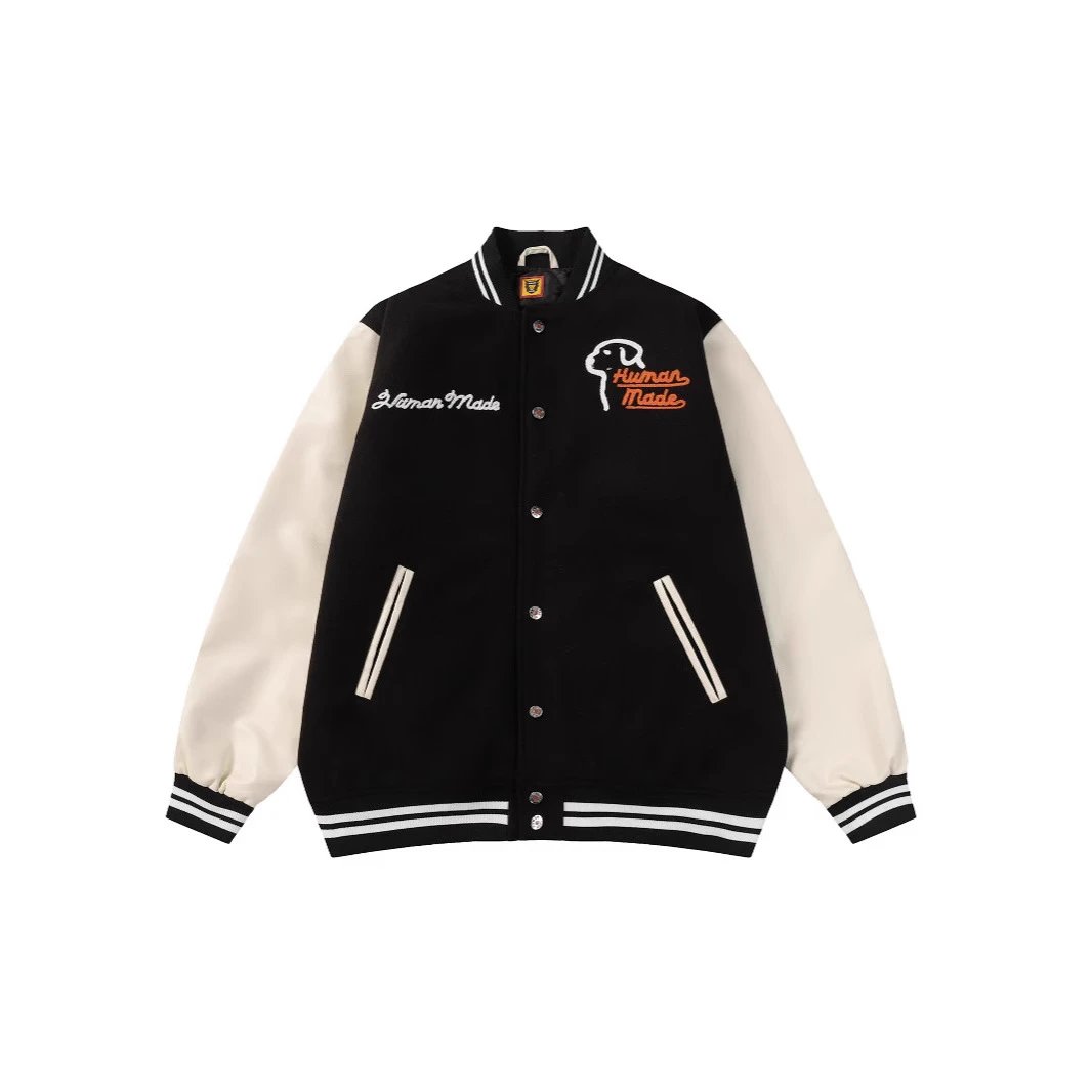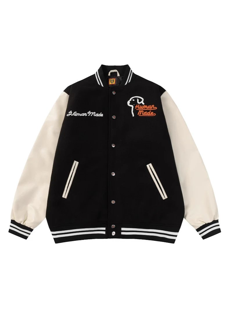 秋冬复古美式HUMAN 拼接皮袖棒球服ins夹克外套男女款情侣款